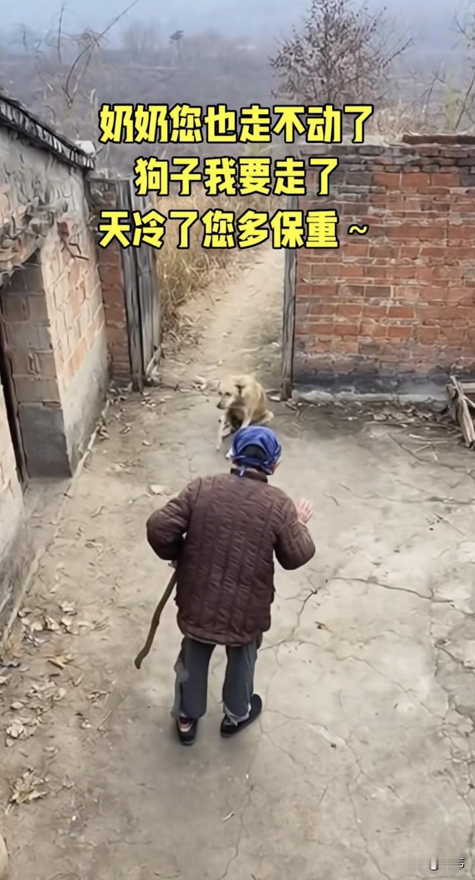太感人了!一位老奶奶十多年前养了一只狗狗,可以说是相依为命的陪伴,可如今老奶奶也老的走不动路了,狗狗也步入了老年,而这天狗狗预感到自己大限将至,它一大早就叫醒了奶奶。 老奶奶估计看出狗狗的反常必定有事,于是就起来跟着狗狗走到院子里,谁知狗狗直接跑向了门口,然后蹲在那里哀嚎了几声,泪眼婆娑的看着老奶奶,就是在和老奶奶告别,随后它走出了院子,然后最后回头看了一眼老奶奶,之后就朝远处跑去。而老奶奶由于腿脚不便根本无法跟上它的步伐,只是流着泪,伸出手挽留,因为她明白狗狗再也不会回来了!狗狗也是幸运的,它的一辈子都有奶奶的照顾和陪伴,而它又把自己的一辈子献给了老奶奶!