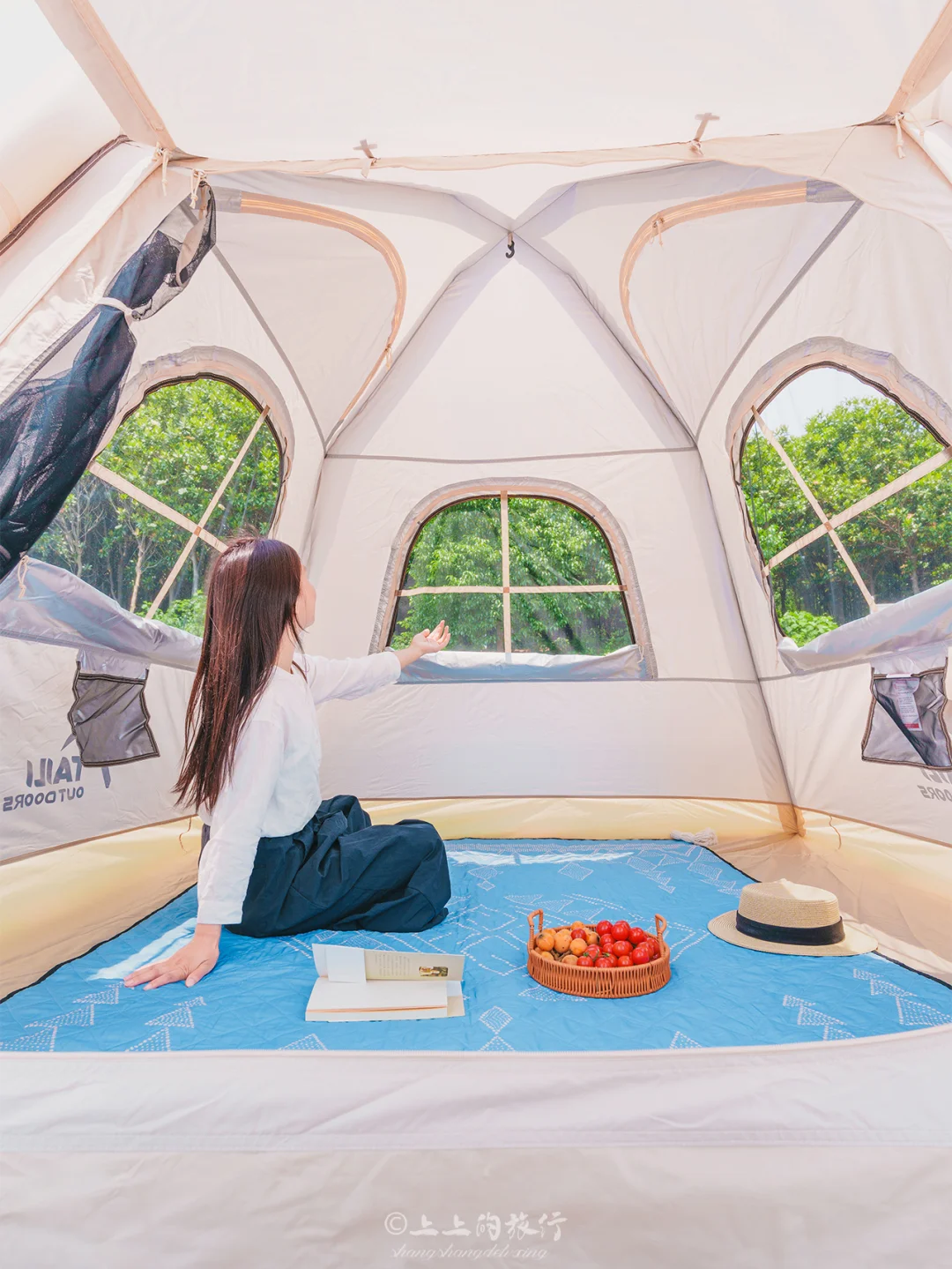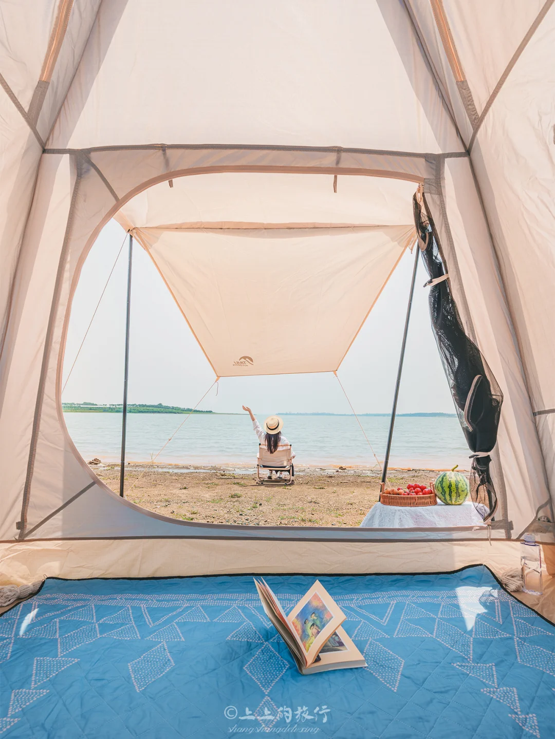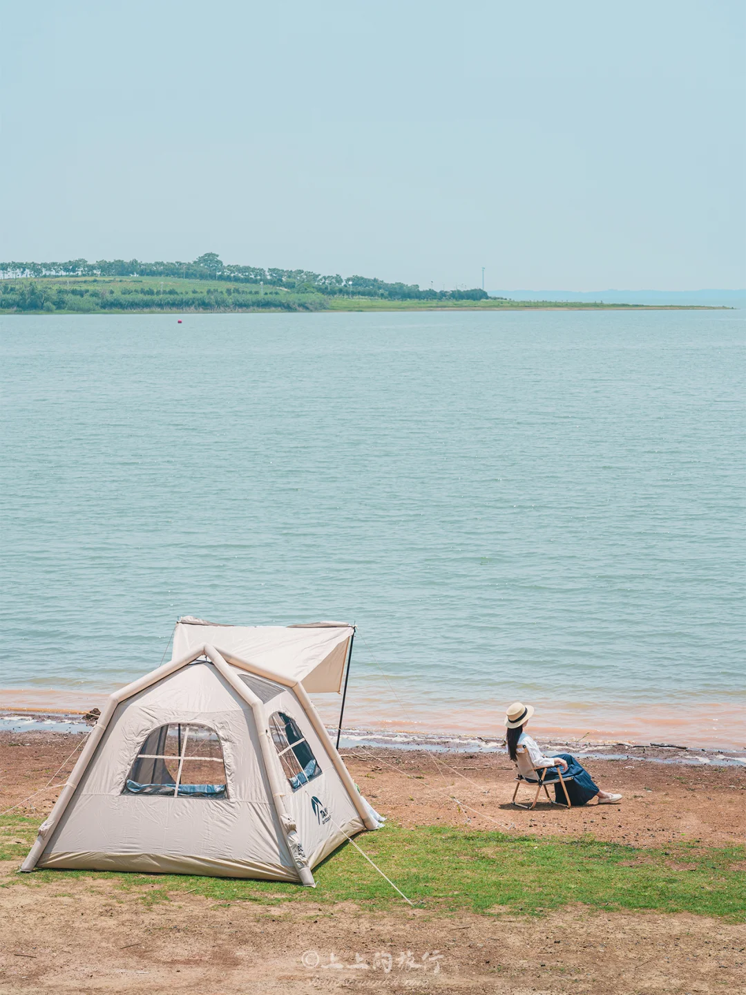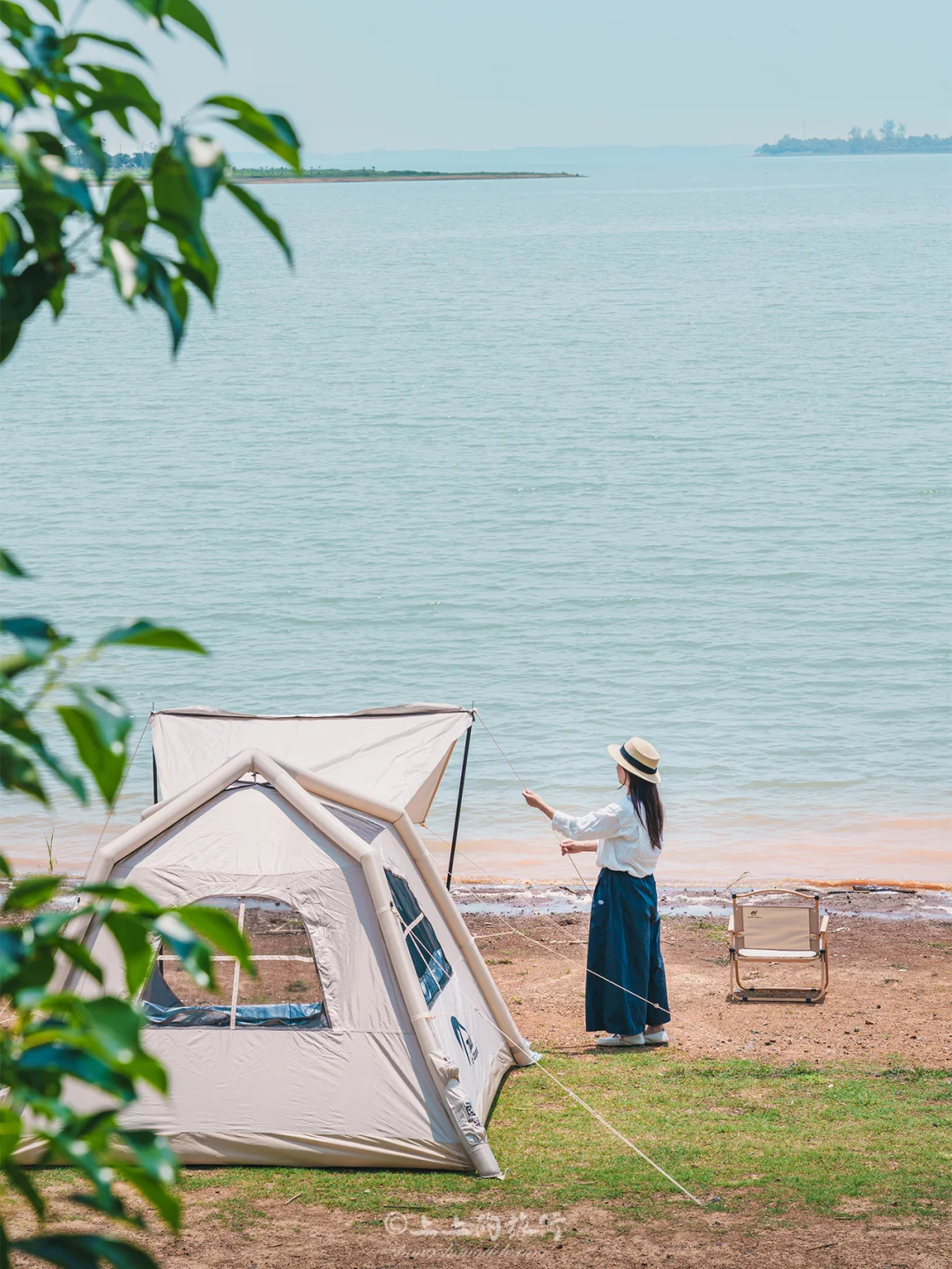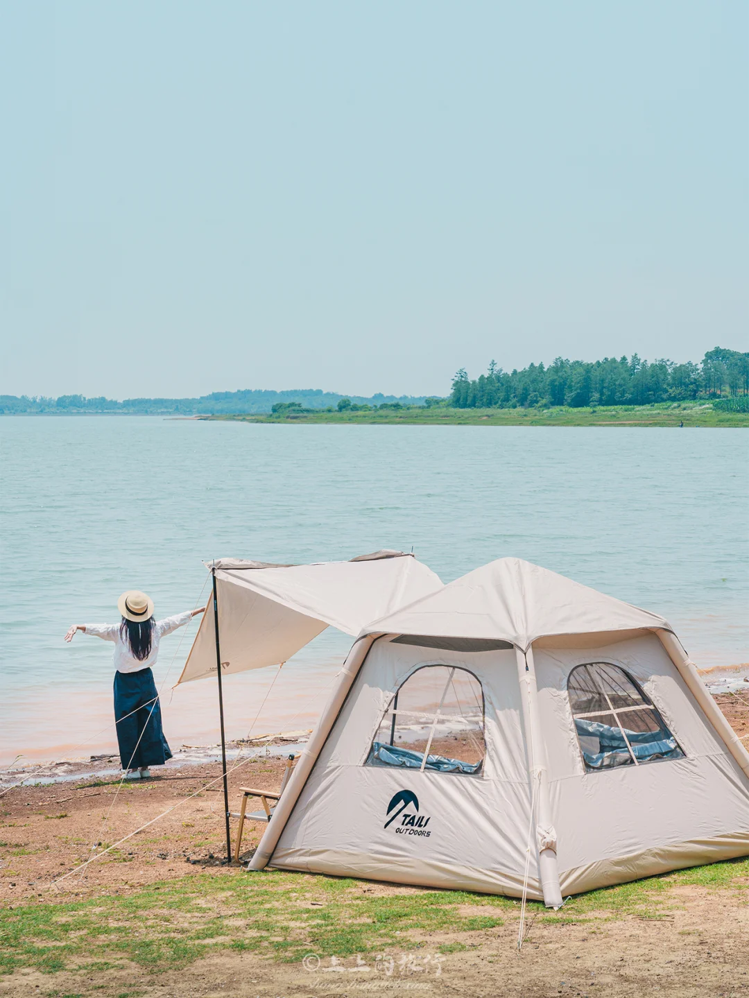 🏕️ 2️⃣刷的宝藏露营地, 人少,森林,树木,路尽头的“海” 这一幕很像动漫里的场景, 在这里露营听湖吹吹湖风, 再去附近摘杨梅, 太满足太惬意,根本不愿离开~ ⛳️坐标:武汉江夏梁子湖•刘家保湖边 5️⃣月底户外有点晒,除了后面的树林,湖边没有遮阴的哦。幸亏我带了太力自动充气帐篷,帐内外都做了涂银层,4️⃣面网纱设计。 露营🏕️超需要的「防🌞➕防蚊」都能一步到位,和蚊子、紫外线说拜拜! ✅“一键自动搭”的功能,真的绝,轻轻一按就🉑,对女生超友好的。 约2.3分钟就自动搭好,充满会自停,不愧是上市公司出品! 气柱做了自动泄压阀,太力科技的品质和性能真的周到,彻底被⭕️粉啦~~ ✅而且帐篷➕自带天幕 的组合设计,空间宽敞,足够3-4人用。 我们摘了杨梅就🏕️天幕下谈天说地,坐着吹湖风蛮舒服~ ⬇️出游小tips: ✔️露营🆓免费,路宽好开,🉑把车开到湖边。 ✔️先导航🧭江夏仓湾陈,有摘杨梅指示牌。 ✔️可先去采摘杨梅(现在只熟了三分之一,预计端午🉑摘)去年带走15/斤,无🎫,在里面吃是免费的。 ✔️继续往前湖边开五分钟就到了,湖岸线蛮宽广,人少,露营捡柴,烧篝火,烧烤玩水,毛孩子玩遛娃都适合! ✔️背后是树林,记得带吊床,吹吹风太舒服了。 ✔️周围🈚️小店,准备齐全哦,无痕露营哦♻️ ✔️左对面为傅家湾露营,仿佛孤岛,也很适合露营哦,还🉑钓鱼。
