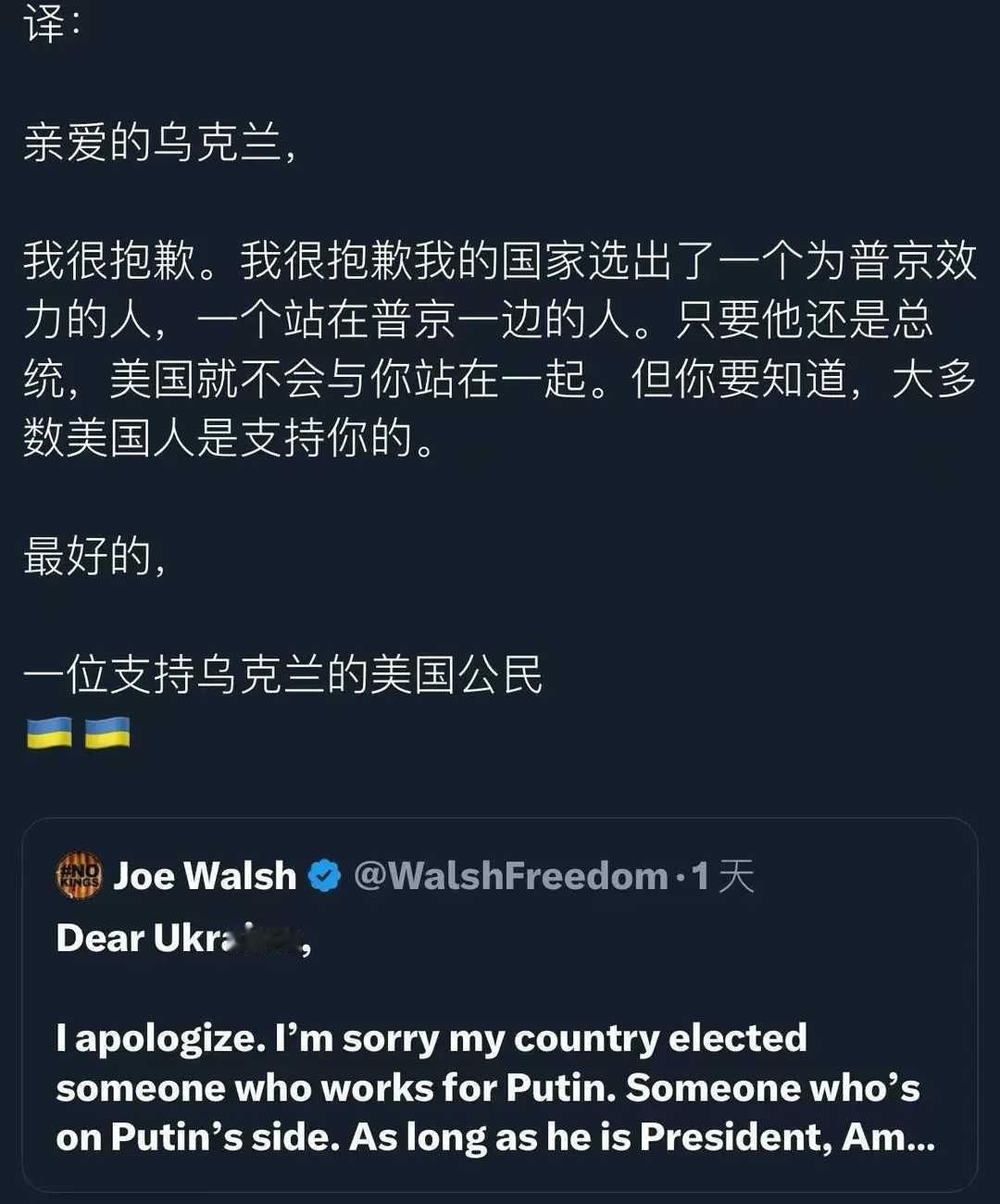 美国人给乌克兰的一封信!俄罗斯乌克兰