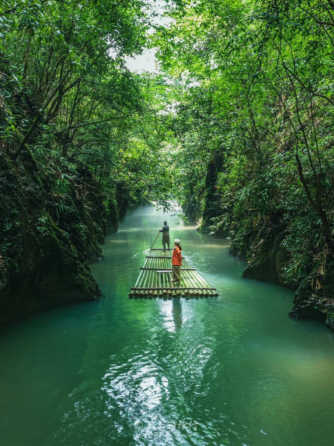 🌳 真美如仙境!水面上浮起的薄雾,让我见证了它原来是如画的仙境~ 竹筏、瀑布、石桥、峡谷,还有溯溪玩水,蕴藏着太多原生态的美。蓝绿色的水与森林的绿色融合,让人陶醉其中。 📍地址:湖北咸宁赤壁白沙袁家