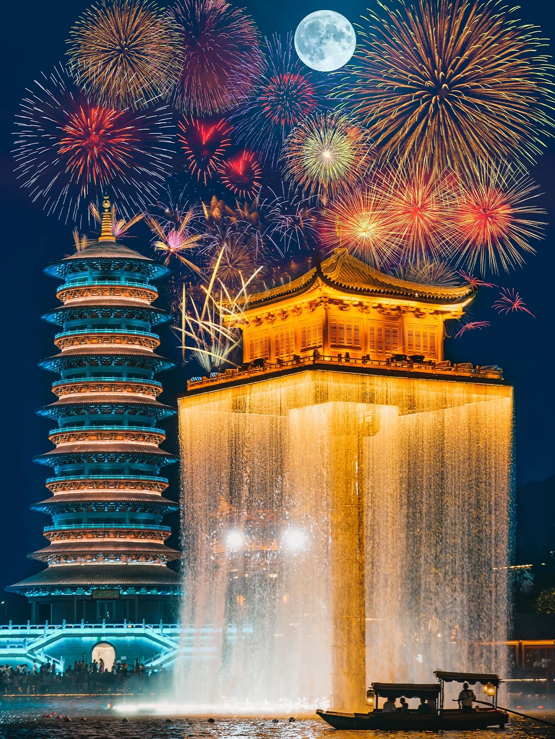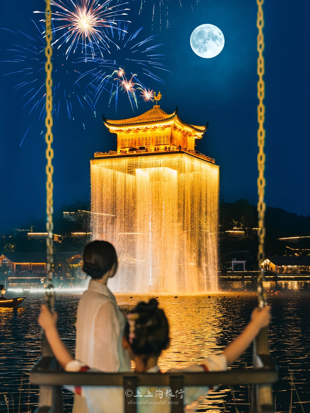✅烟花秀(7.1-8.31日周五、六21:35) 空中阁楼璀璨烟花,秋千划船穿越大唐盛世。