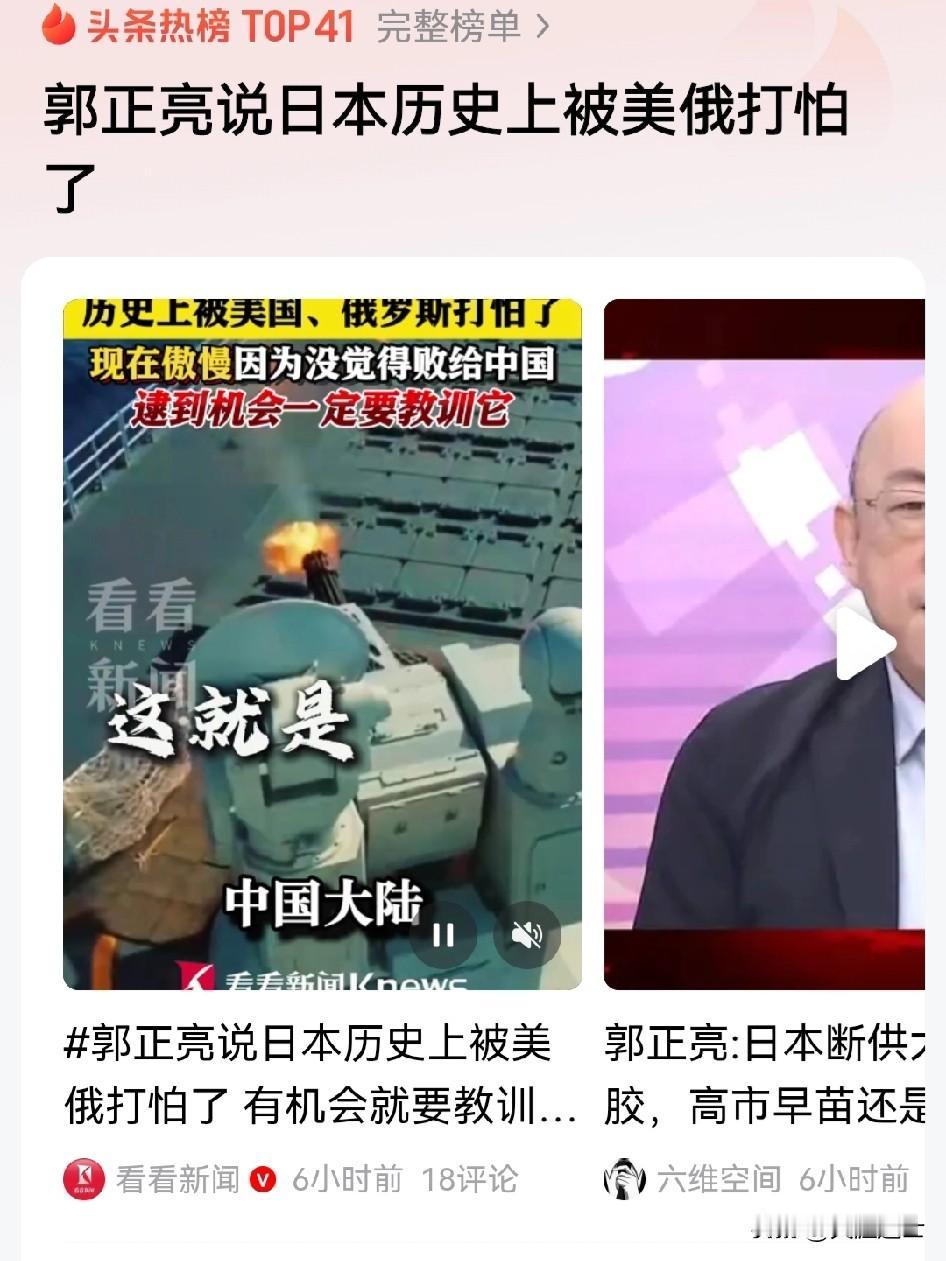 名嘴郭正亮说日本历史上是被美俄打怕了! 他这话是有潜台词的,就是指日本觉得当时没有败给我们,他们对那场战败还不服气。我不知道他这种说法有没有市场,但肯定不符合历史唯物主义,毕竟当初他们战败的受降方就有我们。