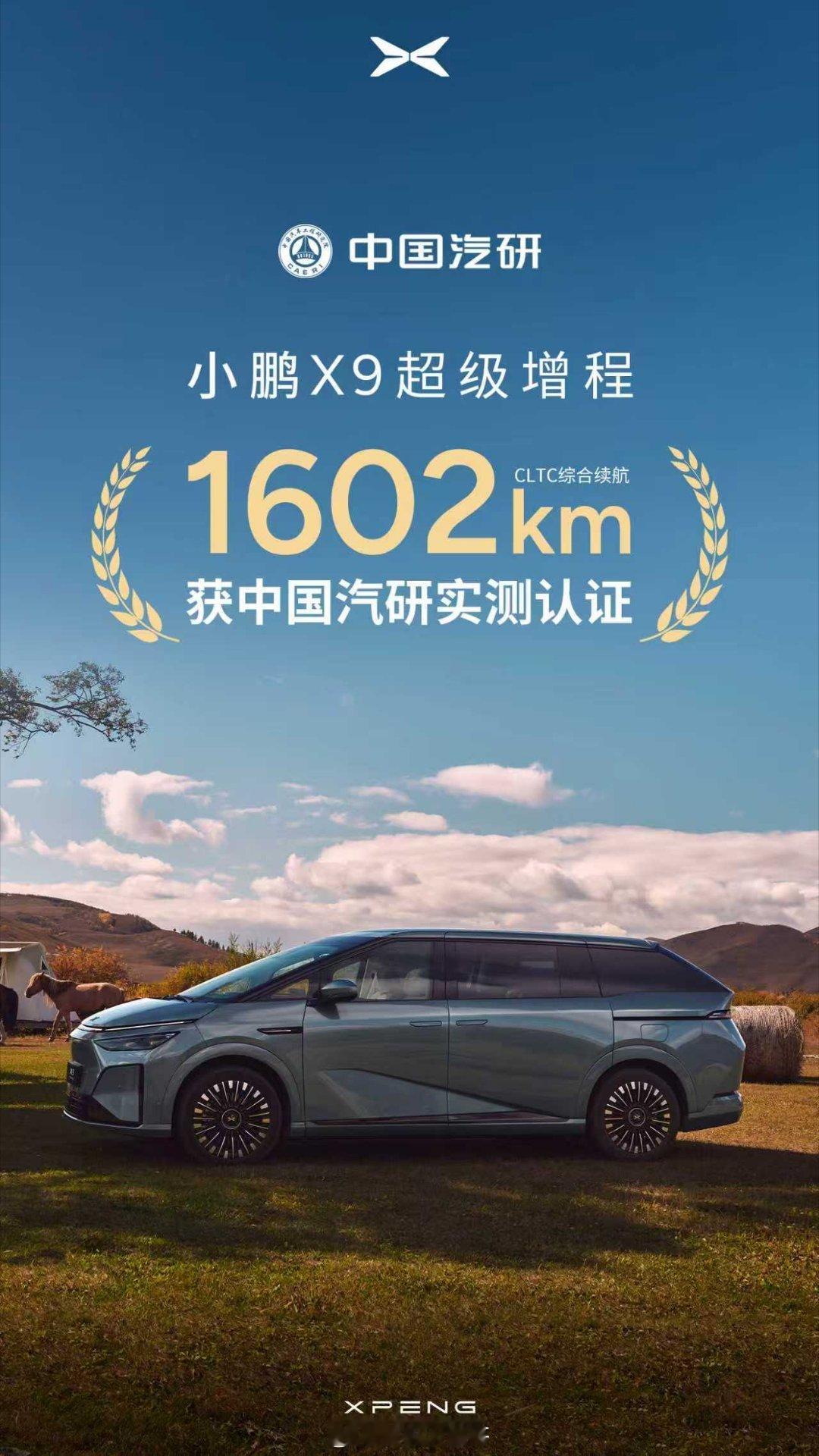 小鹏X9超级增程获中国汽研实测认证,综合续航达1602km,十年三电技术加持,能耗控制拉满,定义下一代增程标准。易车实测中,63.3度超快充电池+60L油箱黄金组合,120km/h严苛时速下续航937.5km登顶高环续航榜,坐实全球综合续航最长大七座硬实力,上市即热销,发布会1小时大定破历史全天纪录,单店订单超100台,试驾排至一周后。