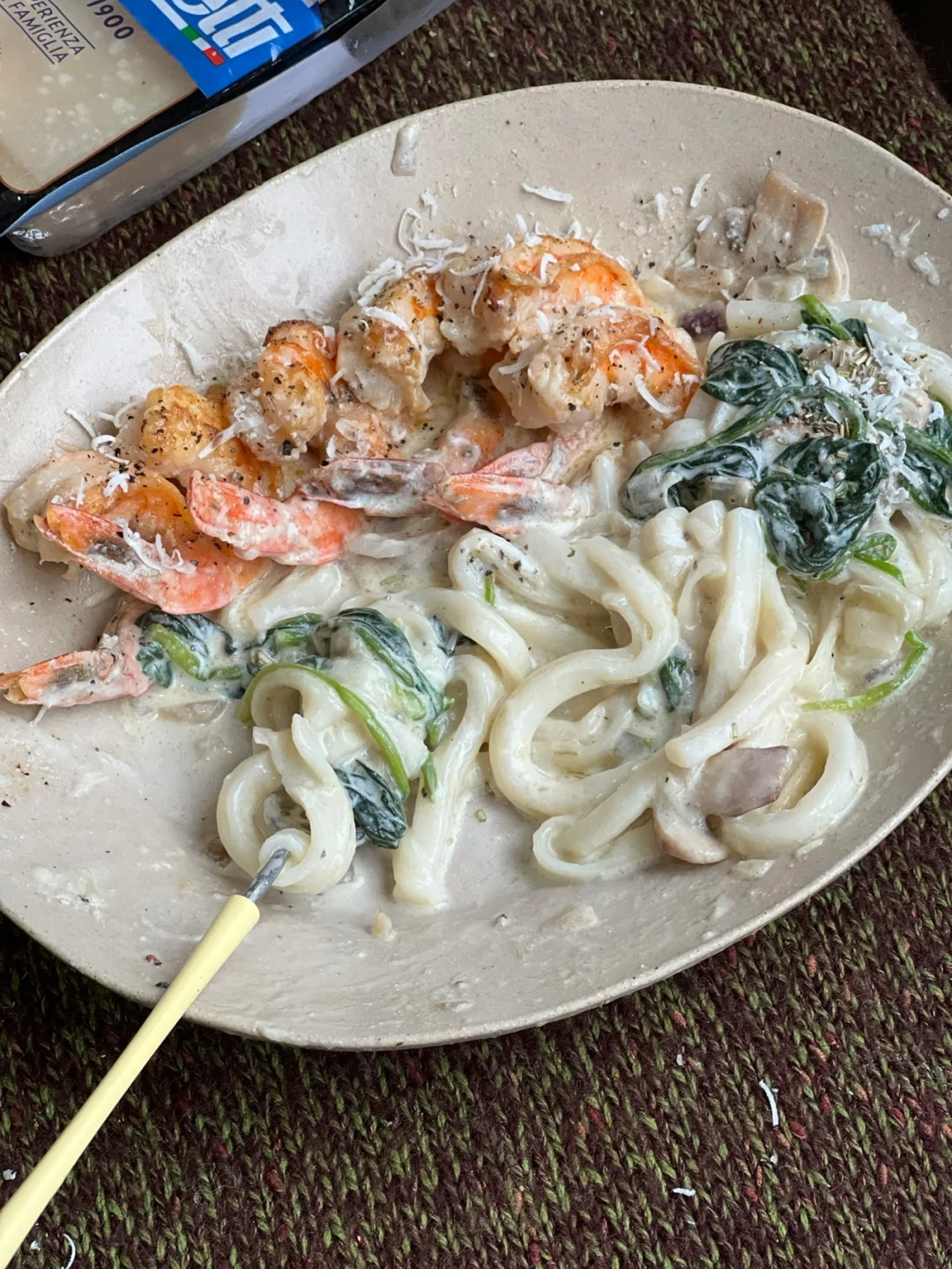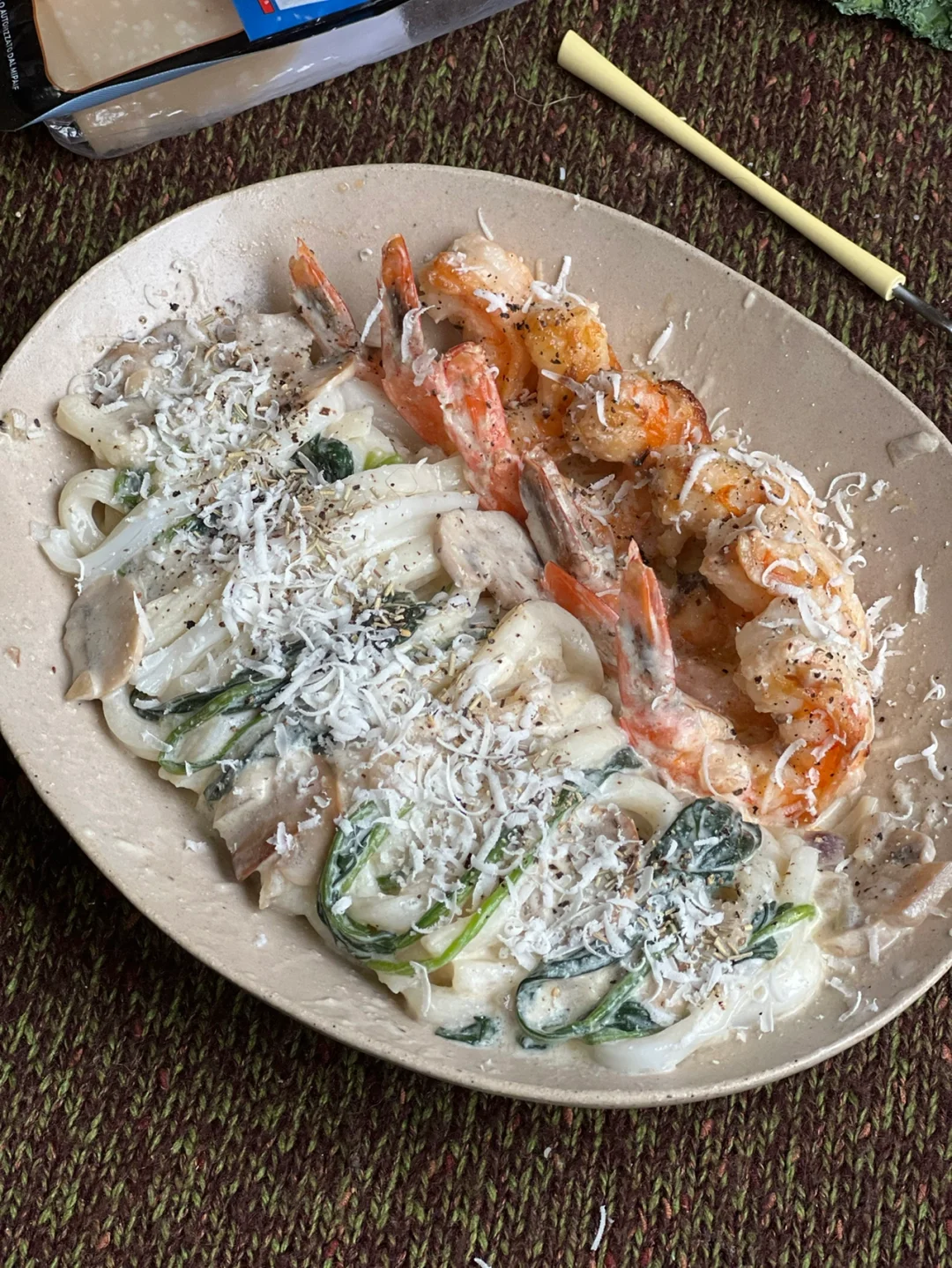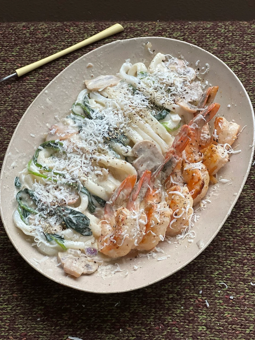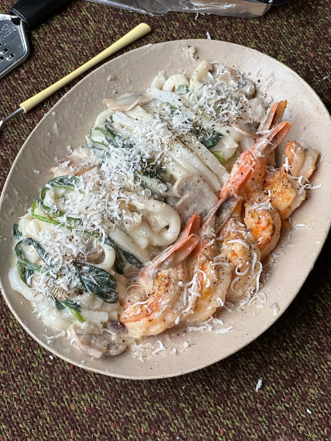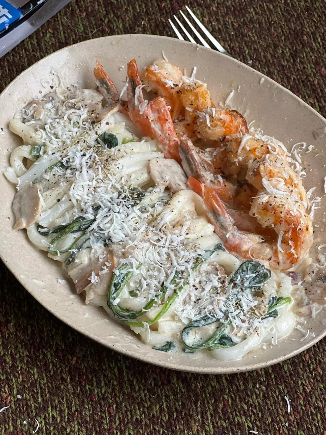 乌冬面被奶香➕菌类和大虾的鲜甜包裹着……😋
