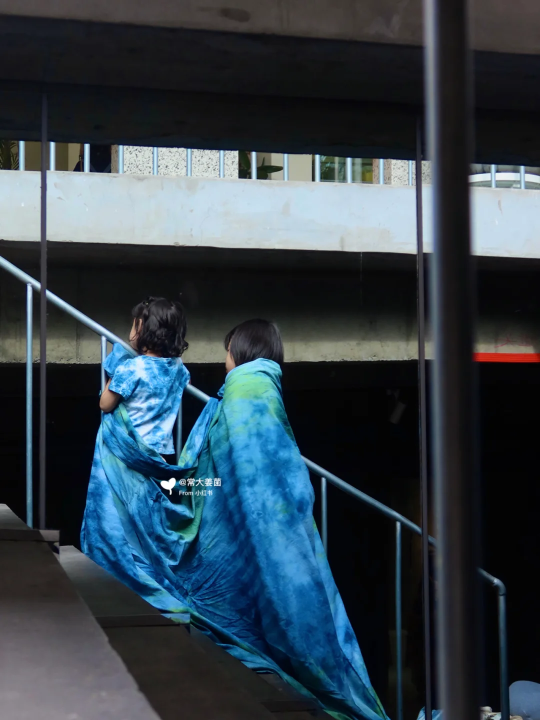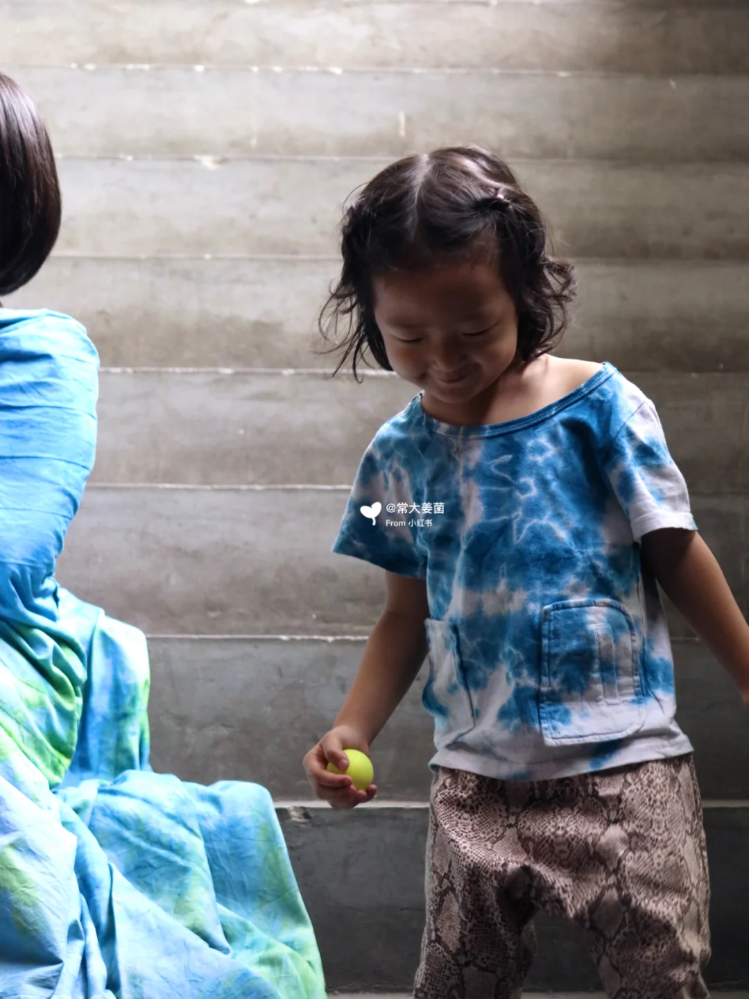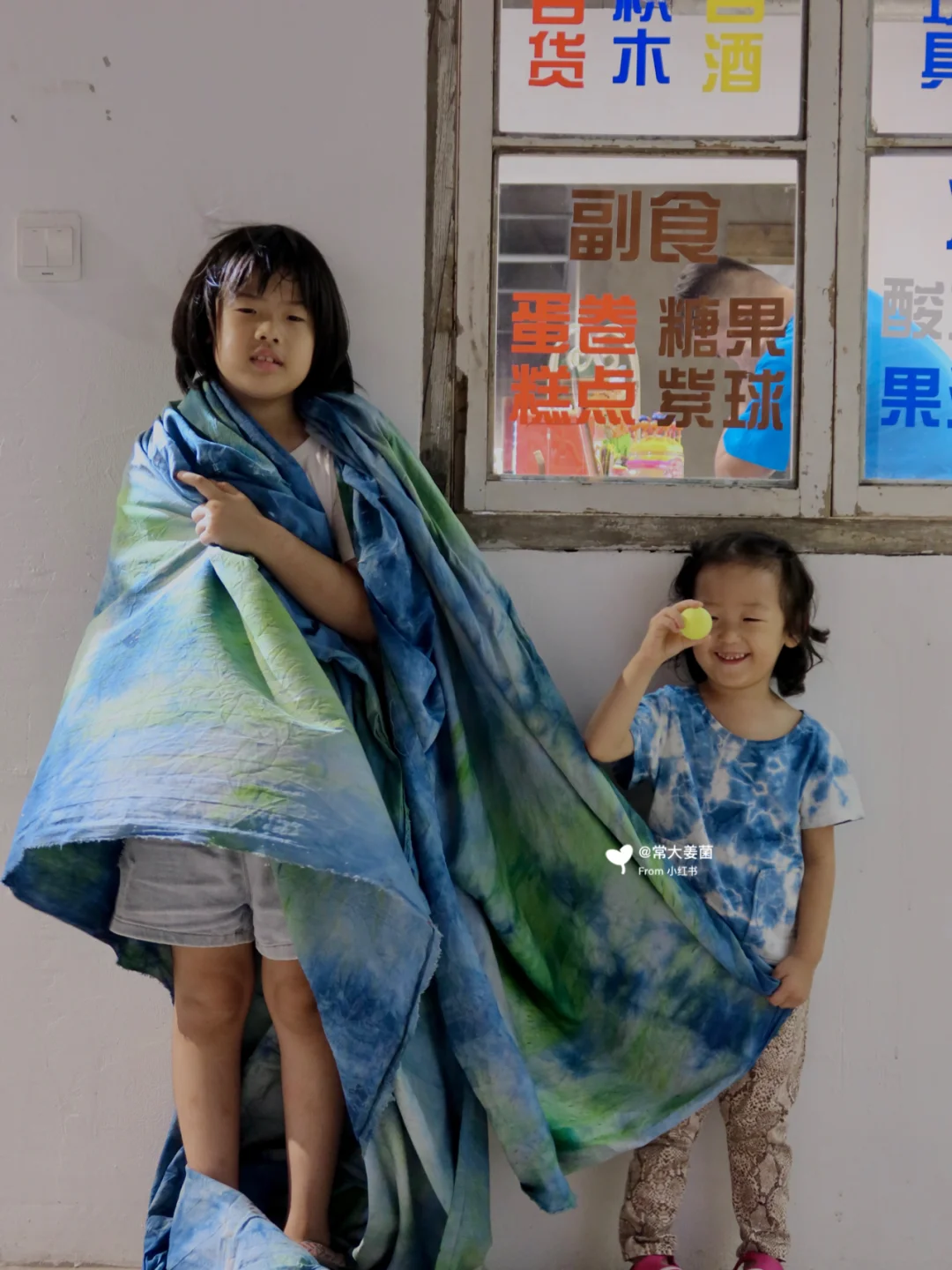 她们拿着我用来做桌布的草木染衬布披来散去的玩着🌿
