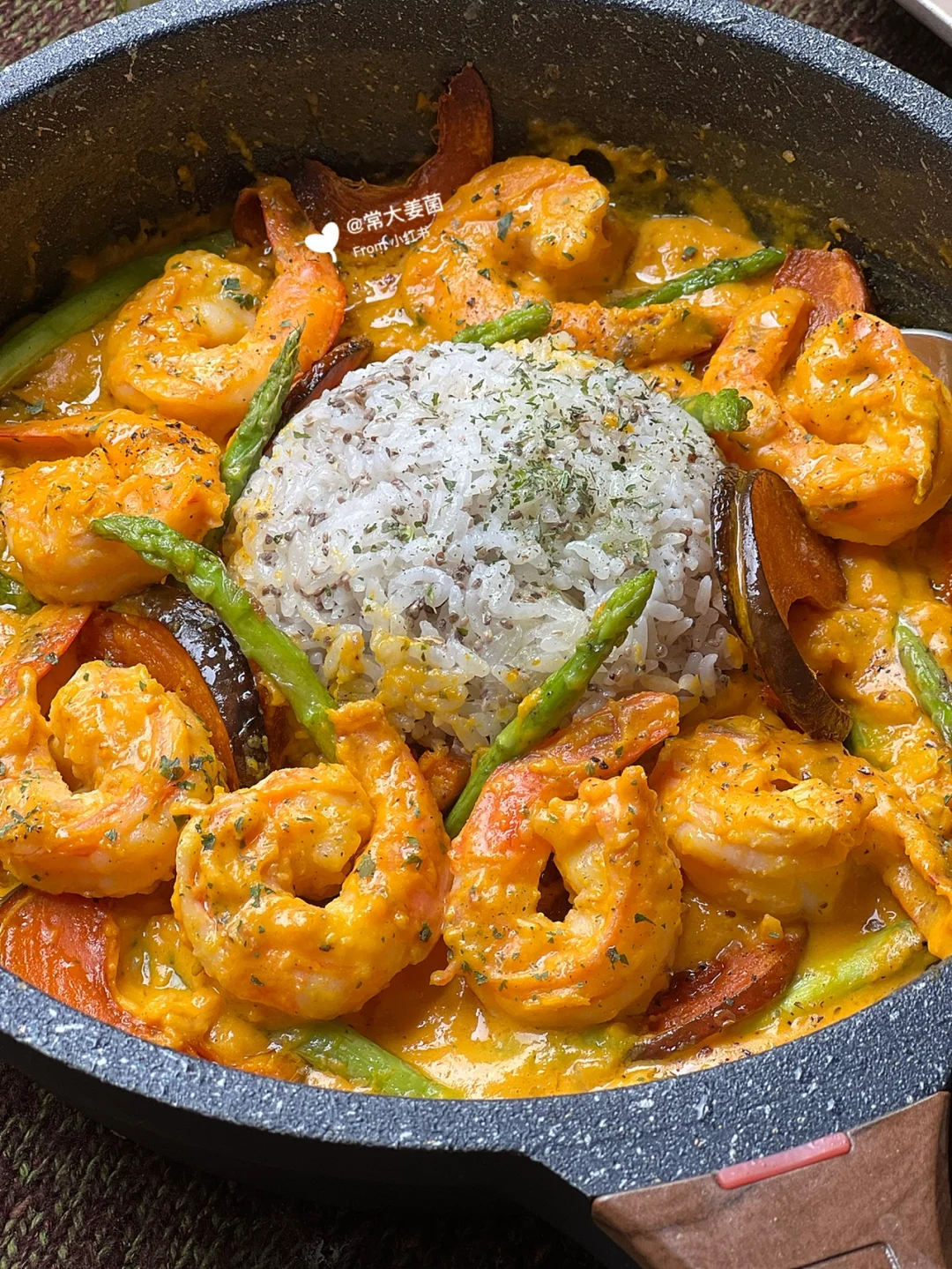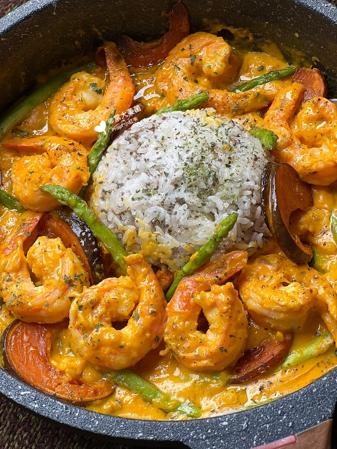 咸香无敌の浓汤🥚🎃裹鲜甜Q弹大虾🍤