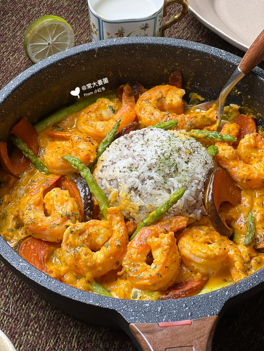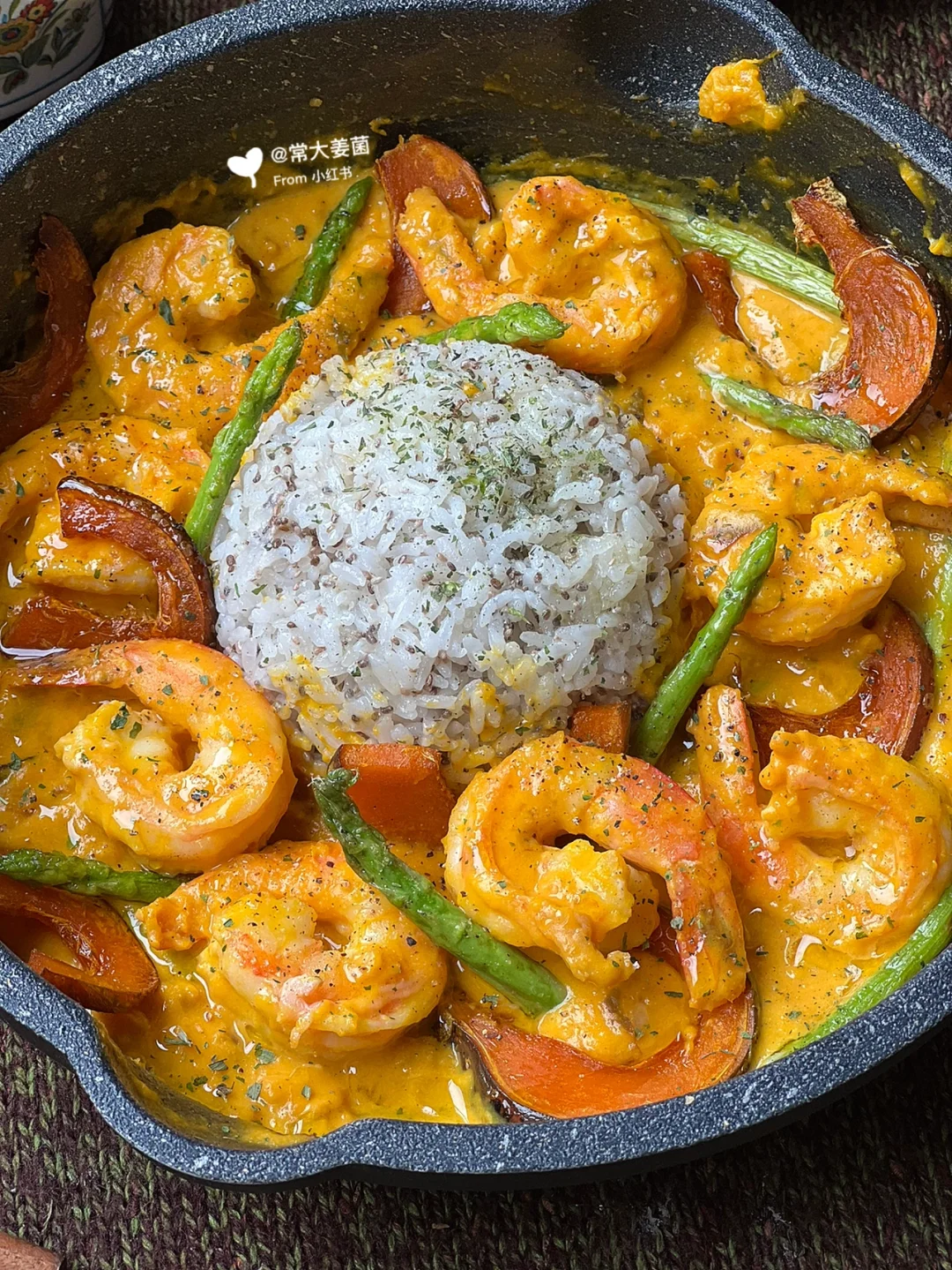 南瓜鸭蛋黄浓汤🍤🍚🥢虾饭,根本停不下来哇…
