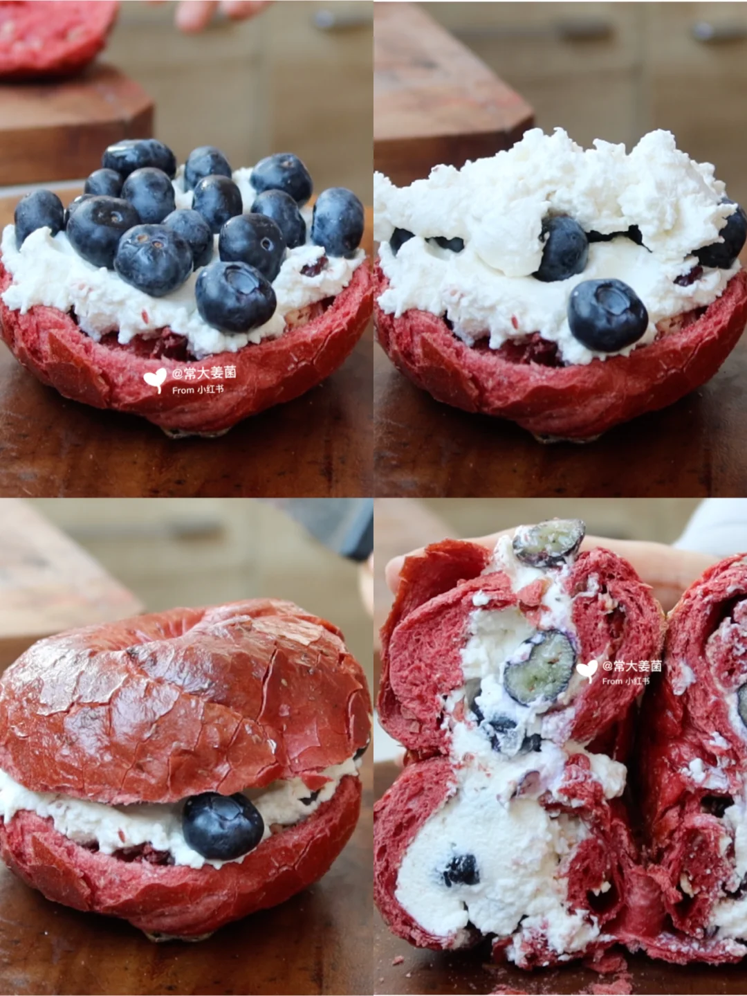 自制蓝莓乳酪|红丝绒贝果三明治🥯爆好吃❗️