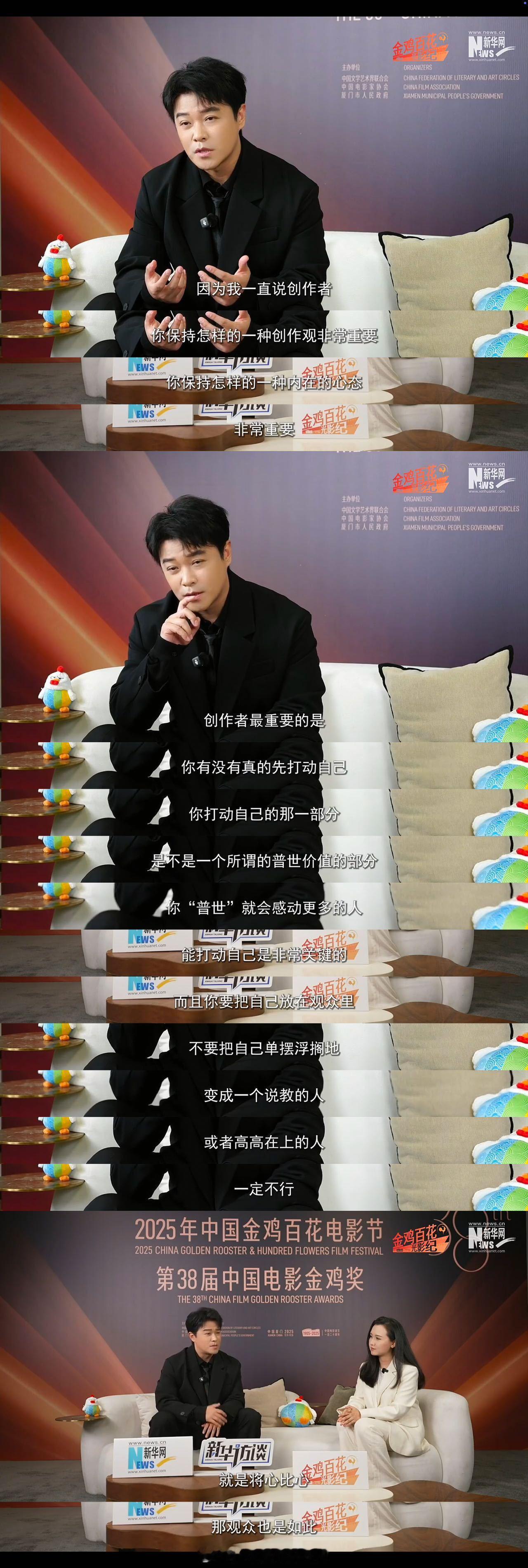陈思诚在新华网关于金鸡奖的采访里提到了自己关于中国电影的一些看法创作者最重要的是有没有先打动自己,能打动自己才是普世化的,不要说教也不要高高在上,蛮有意思的一段独白,但看他操作又莫名合理,在他的电影里你能看到很多种不同的表达,《消失的她》玩极致的悬疑,《三大队》走纪实风,《解密》里去碰触美学和艺术的,在《唐探1900》里塞满历史沉重感,但同时有用插科打诨去做平衡,有人吐槽他,但也有更多电影人羡慕他对于观众内心和市场的把控,可以看看他在这个采访里的看法,至少他没把观众当傻子哄。