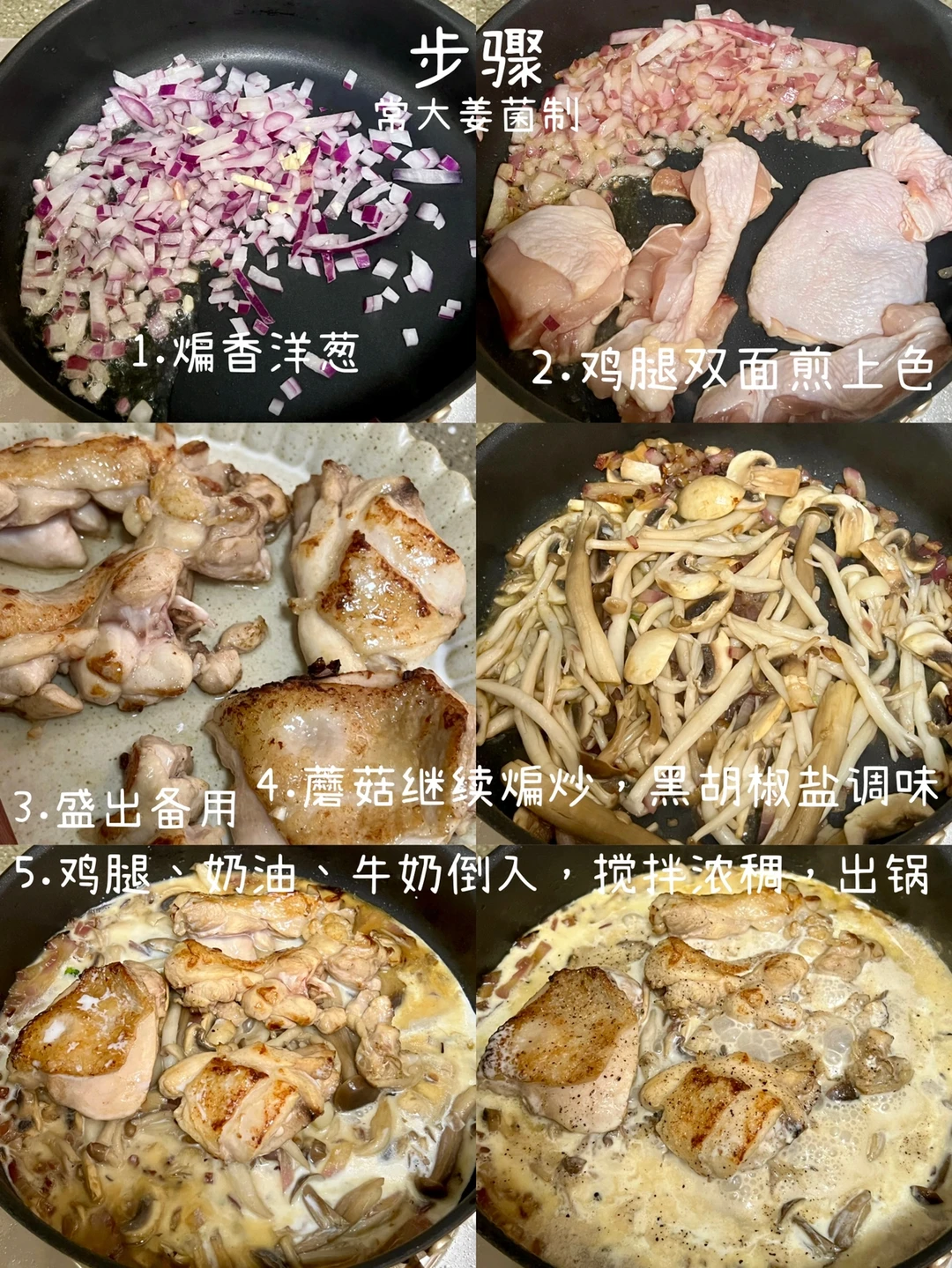 鸡腿子煎香,法式奶油咕嘟咕嘟炖上……