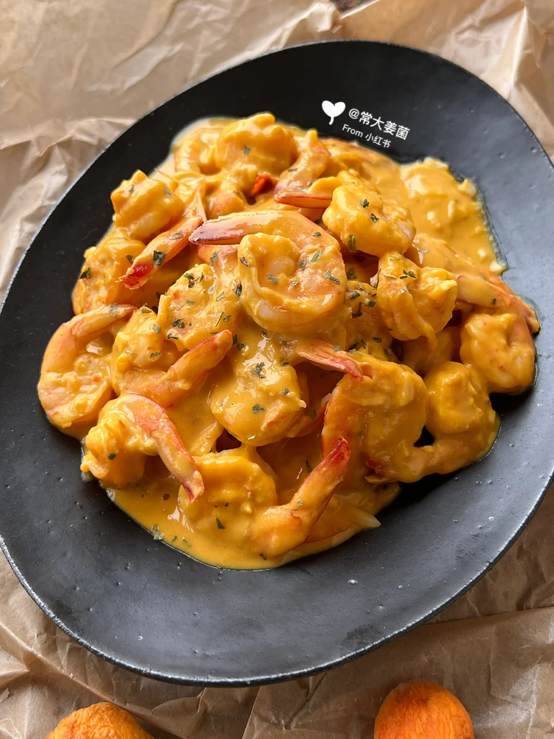 南瓜鸭蛋黄浓汁焗虾🍤🎃一口沦陷了我……🥹