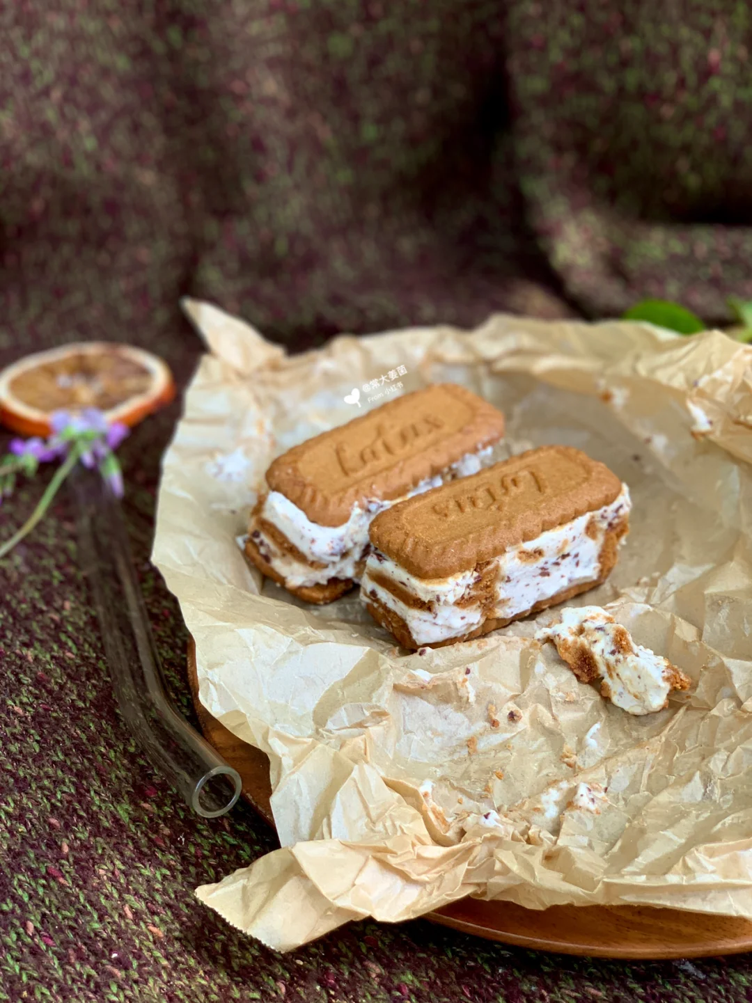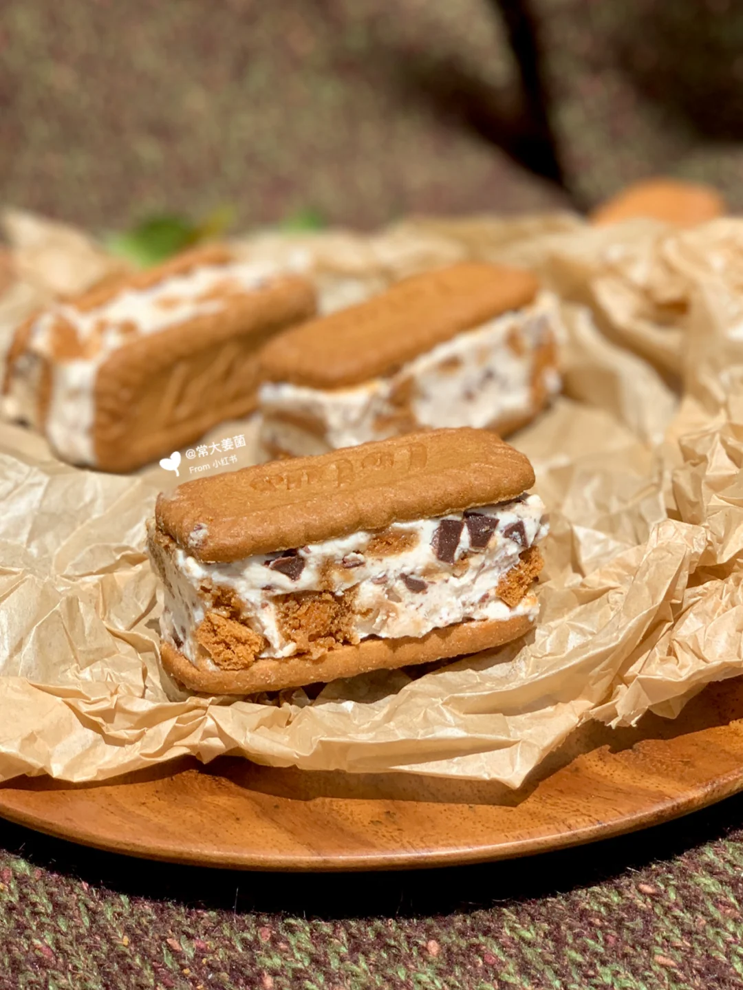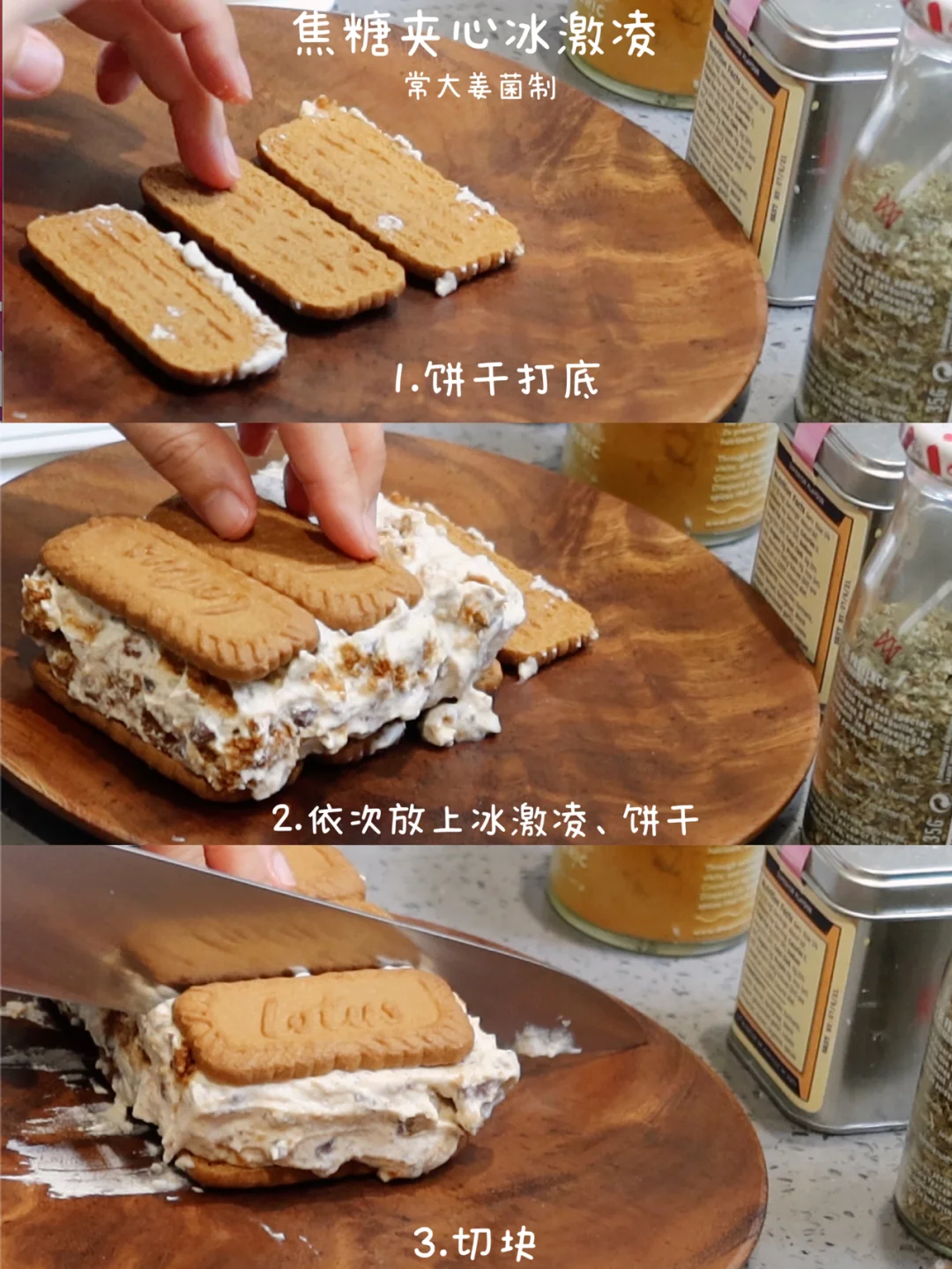 去年用梳打饼干做过,今儿用焦糖饼干做~