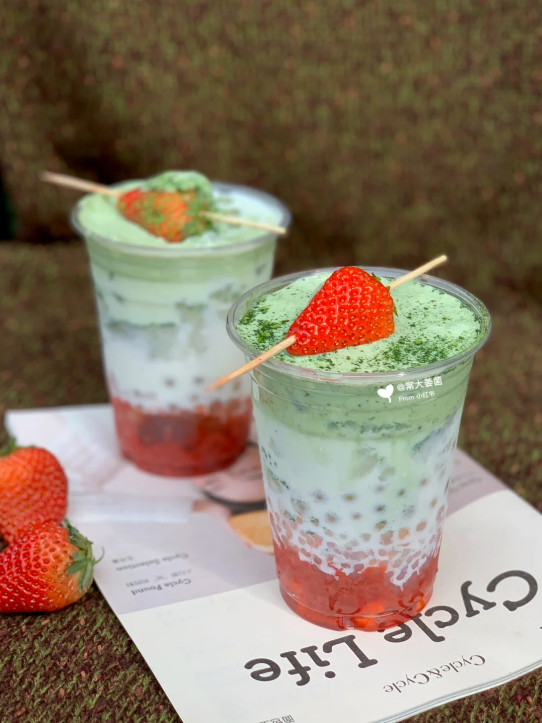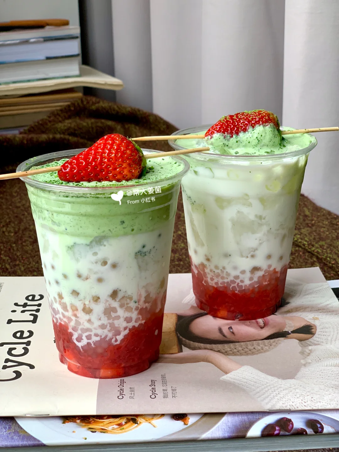 我飘了!草莓啵啵鲜牛乳&抹茶奶盖,有点绝!🍓
