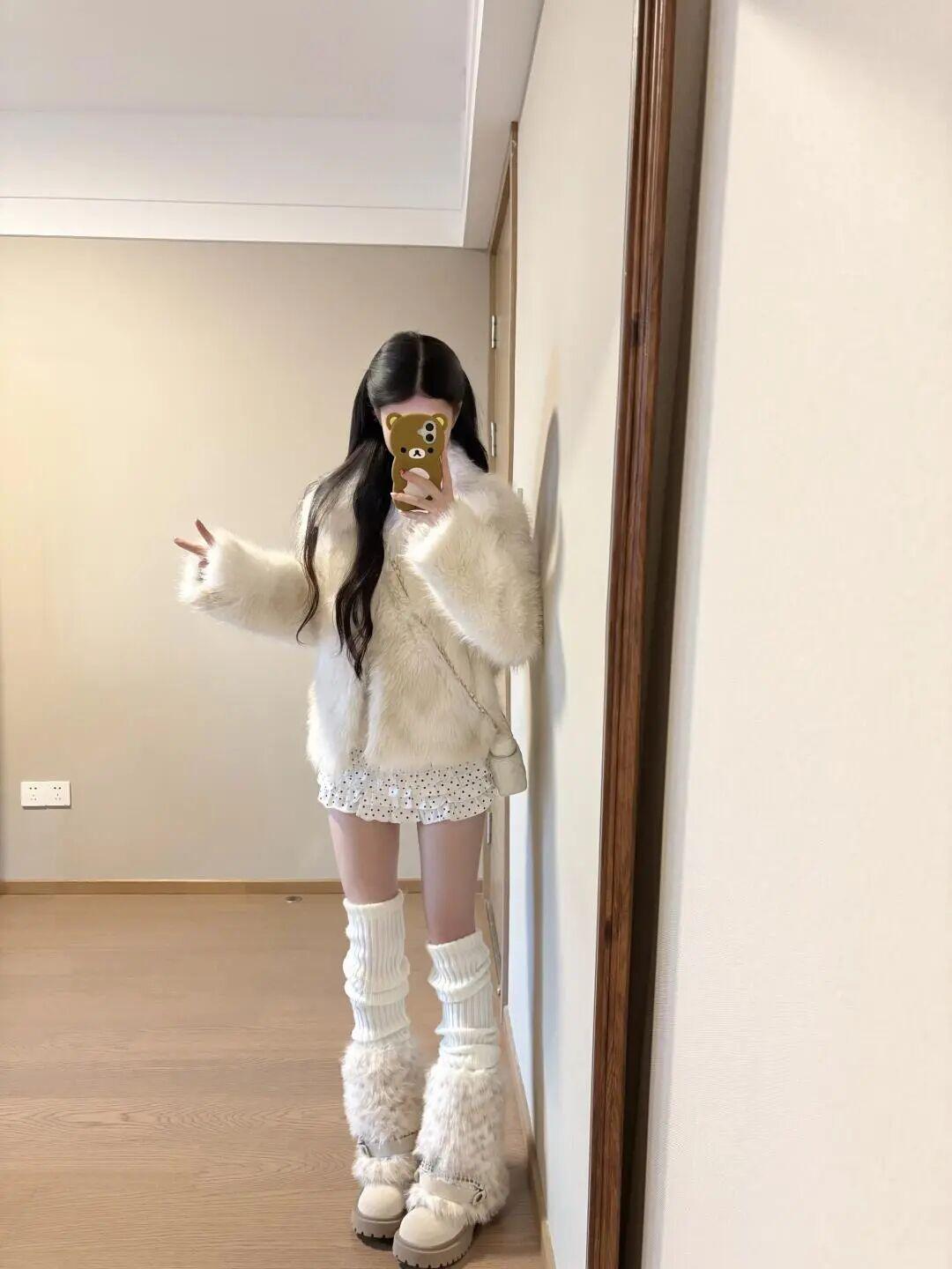 这身穿搭好可爱,毛绒靴子很吸睛!