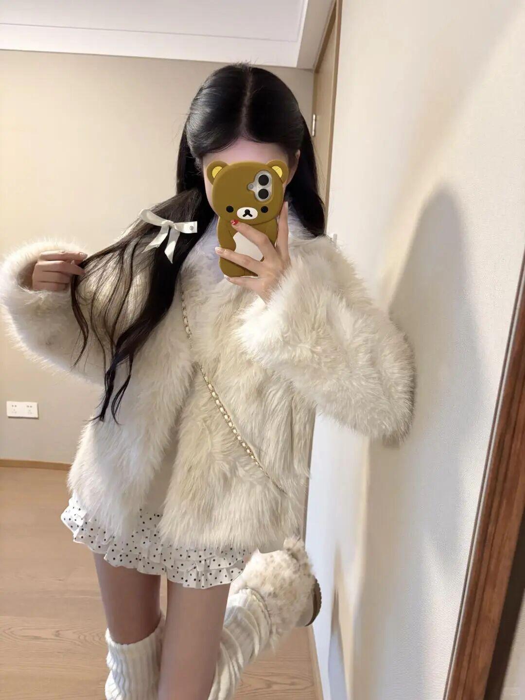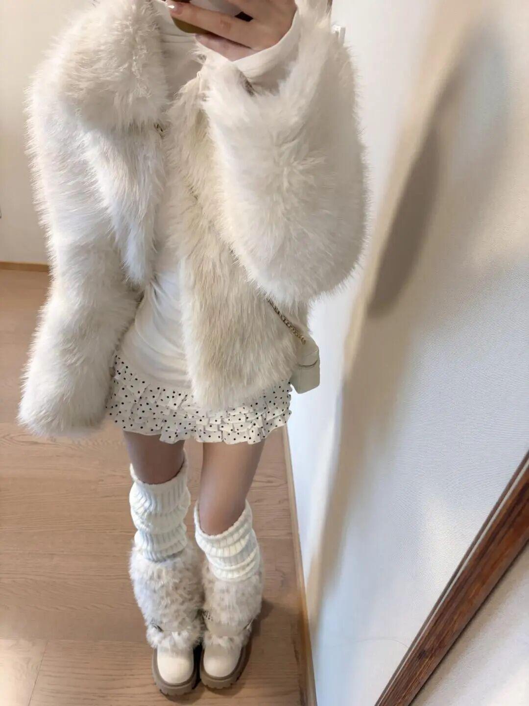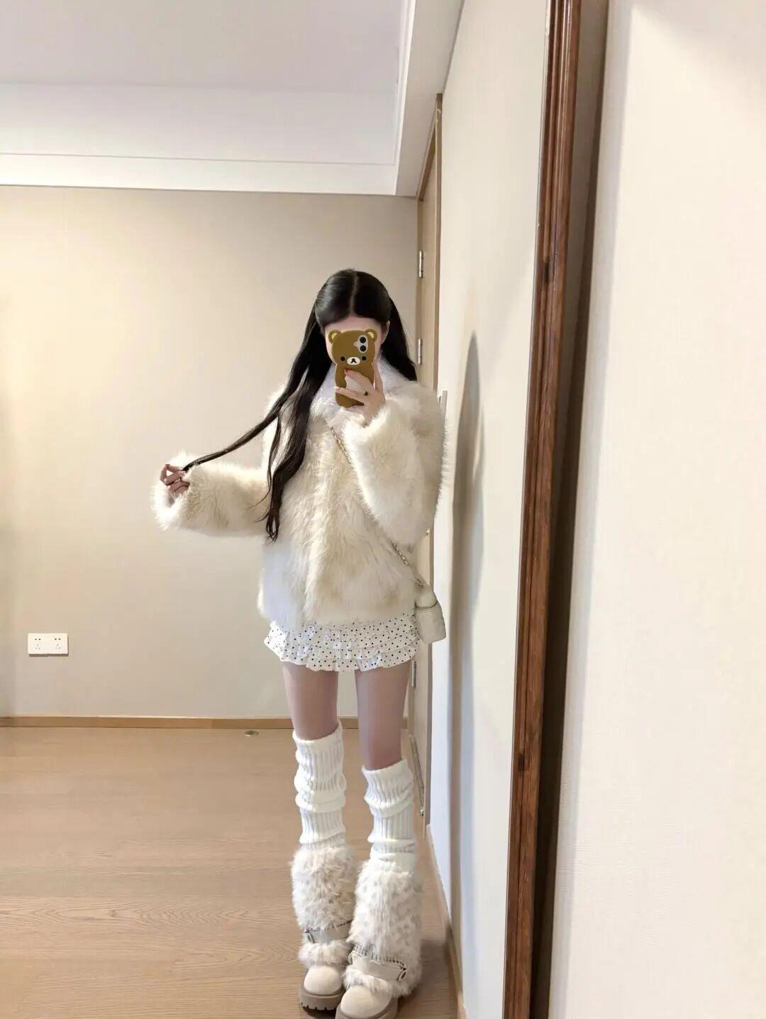 冬日穿搭指南:毛绒外套+灰色紧身裤+白色运动鞋,温暖又时尚!🌟👗👟