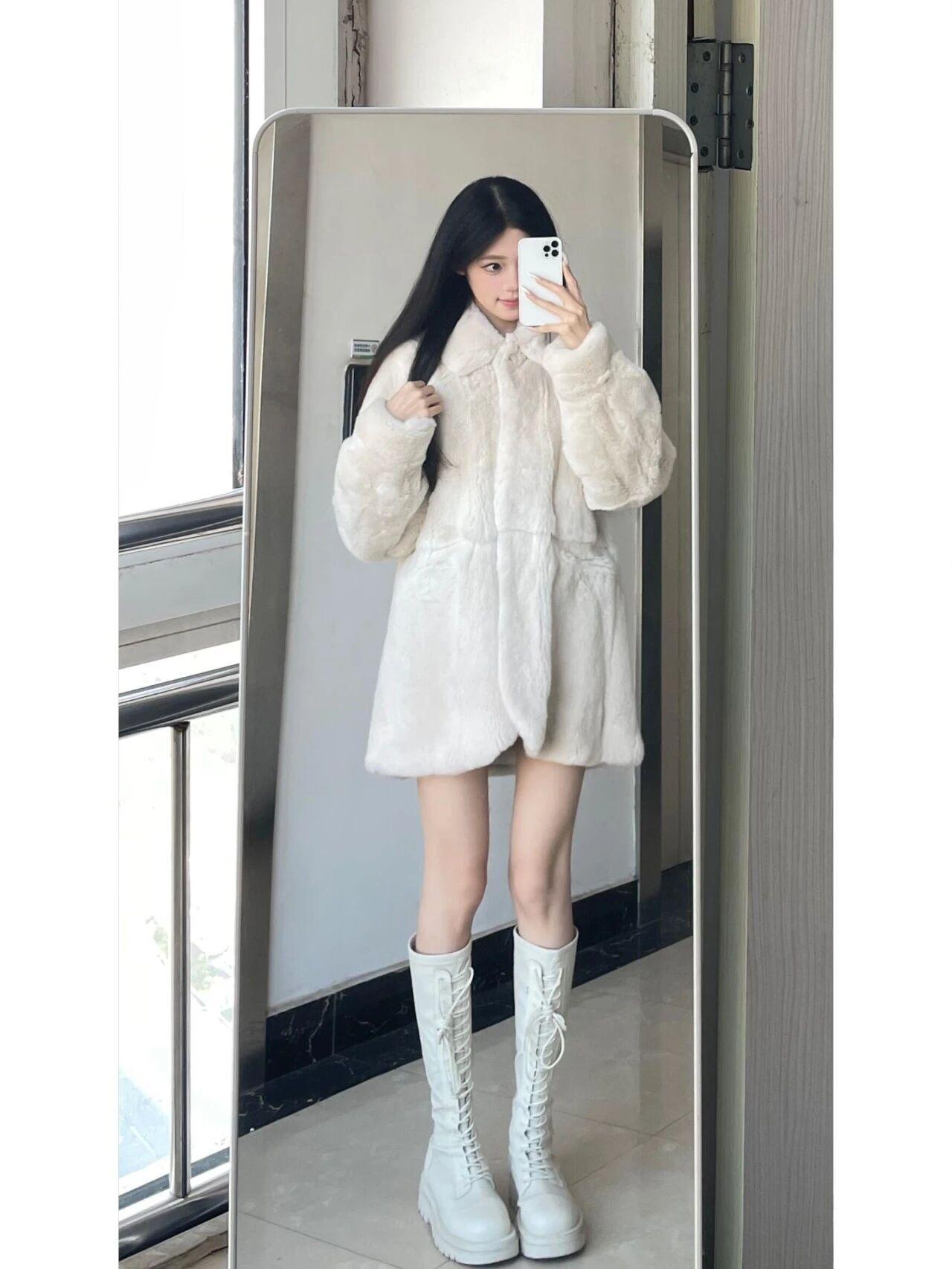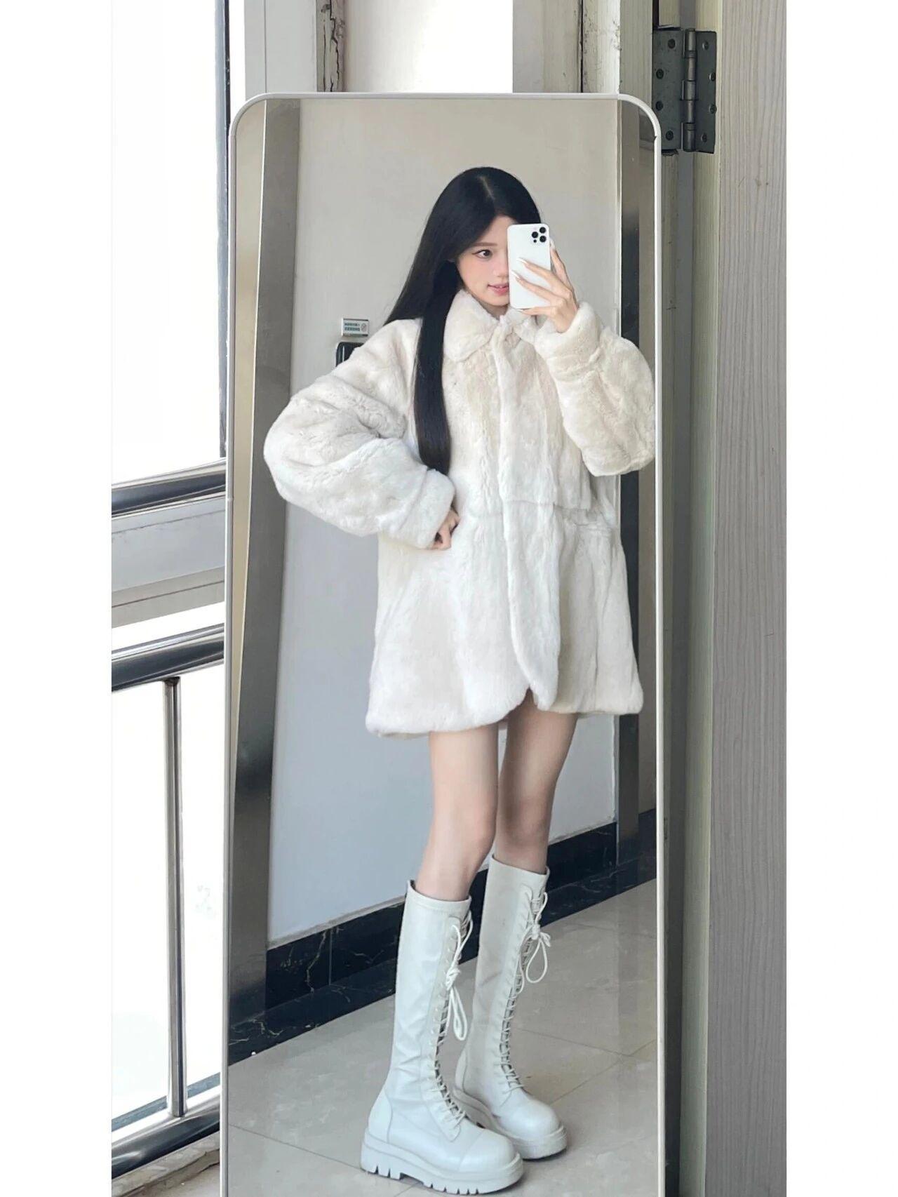 这身穿搭好可爱,毛绒靴子很吸睛!