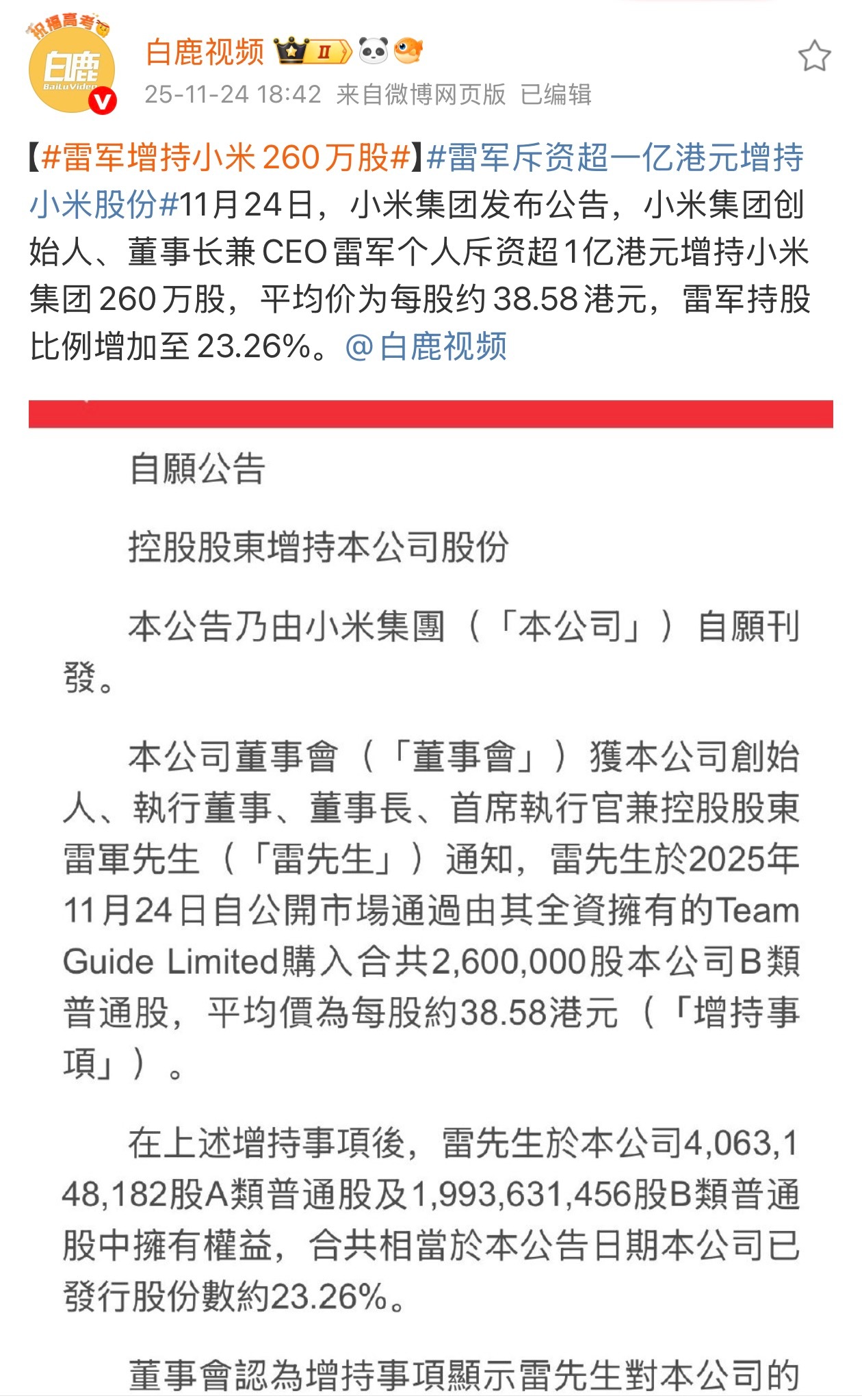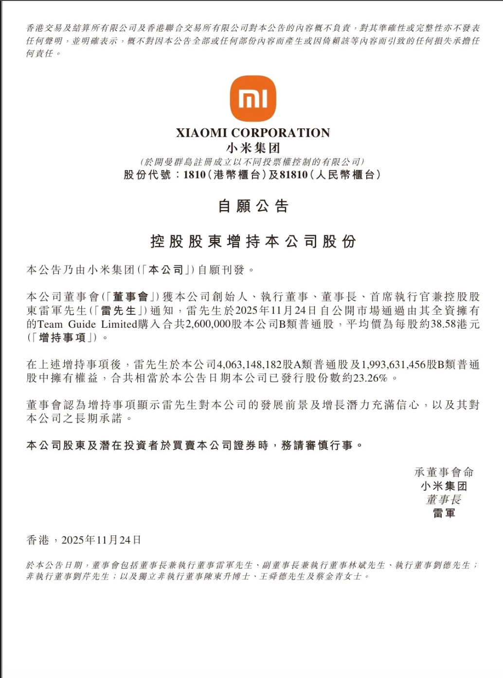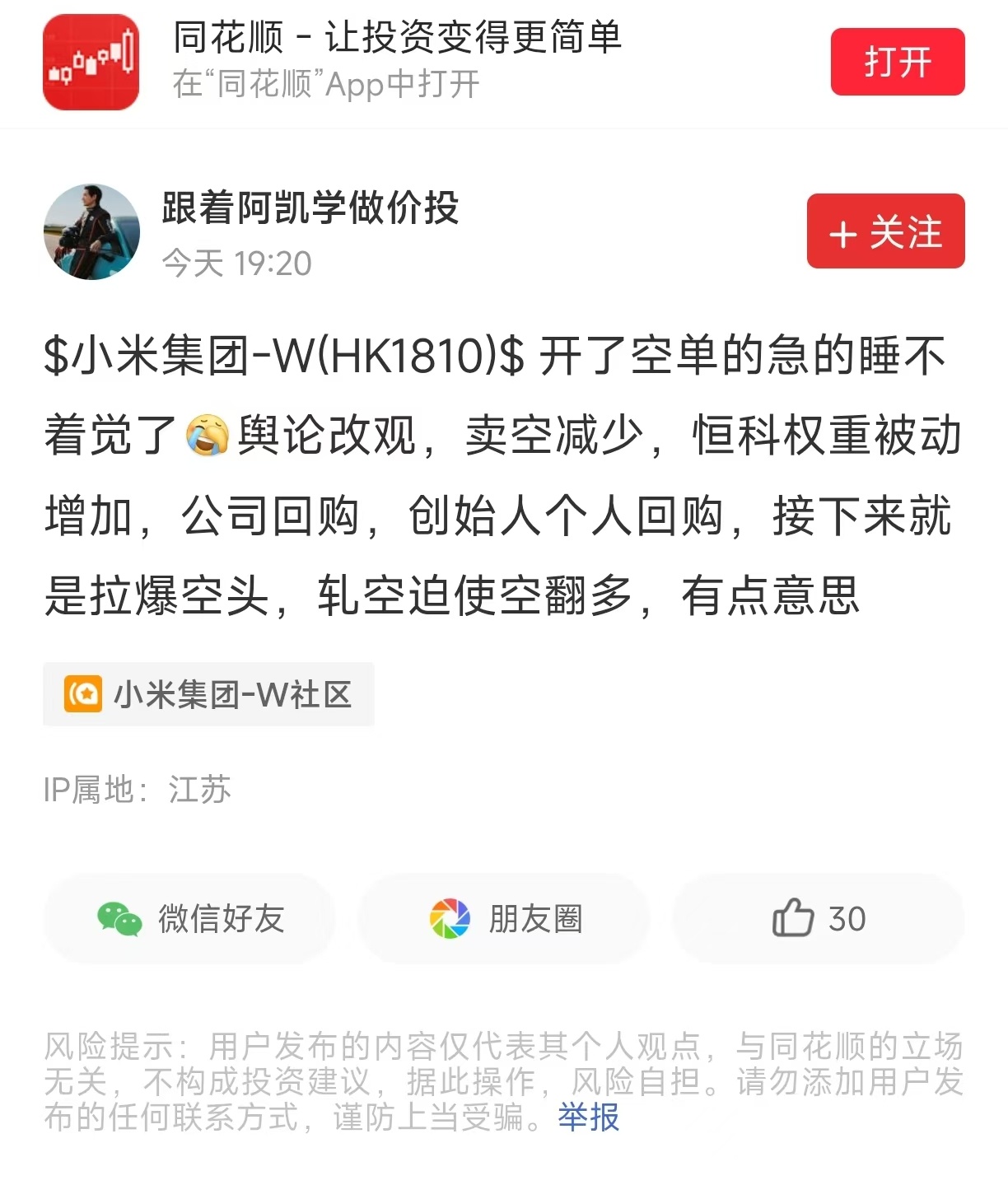 创始人自己用真金白银买股票,看得出雷总对小米未来很有信心,从20日、21日,小米连续两天回购2150万股,总斥资金额超8亿港币,雷总个人再斥资1亿增持股票,公司回购+创始人增持,一套组合拳打得很明白,就是告诉你我有信心,对未来的增势更有信心……阿米本身现金流就稳健,加上Q3业绩增长不错,所以说,小米管理层对发展前景看的很清楚,不仅是自己的信心,也是给股东信心。