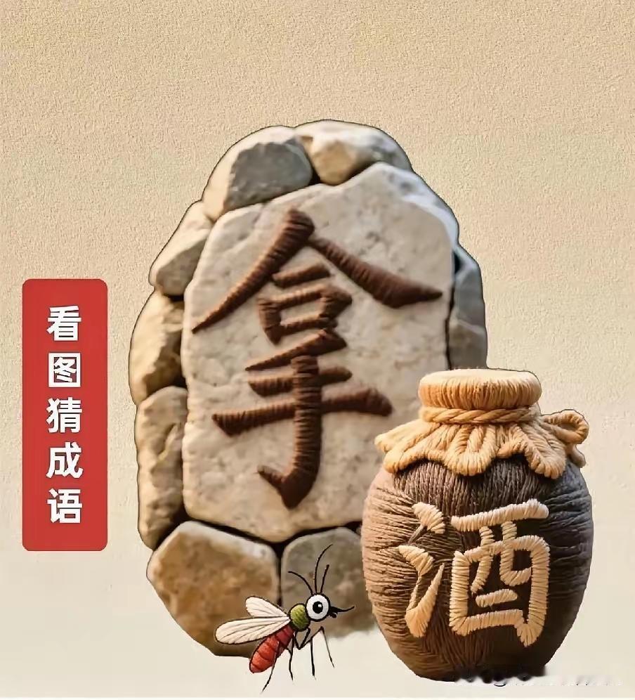 这个成语猜谜图太妙了 一个“拿”字 写在一块大的石板上 一个“酒”字 酒坛口封得严严实实 怎么拿酒啊 我想两天也没找到头诸 请头条高手来搏一把,不吝赐教