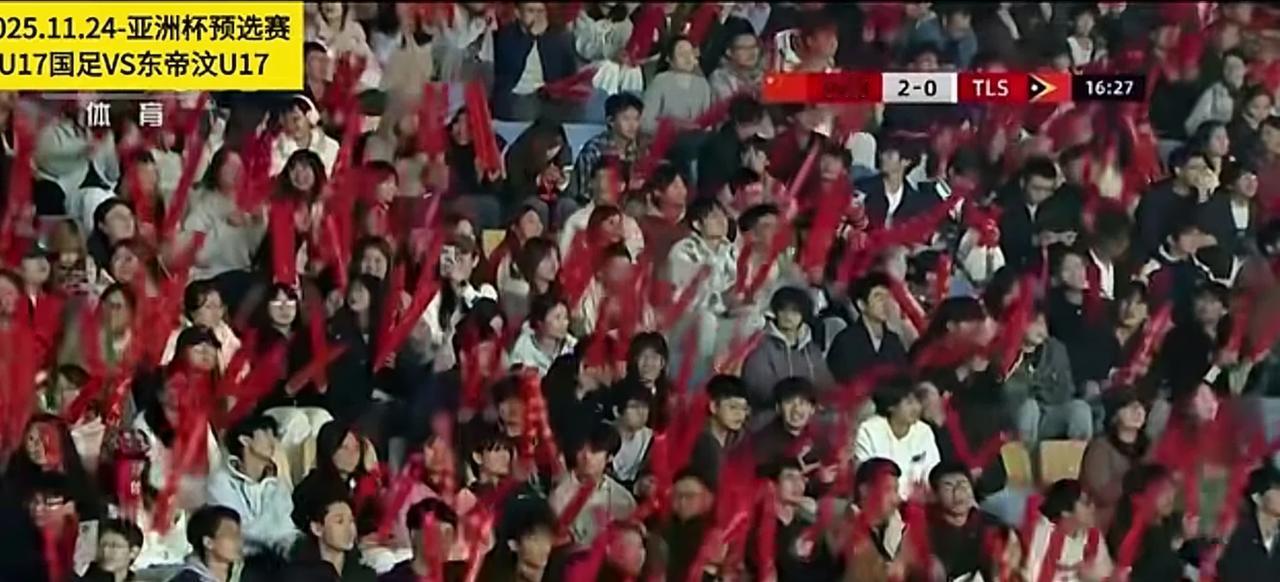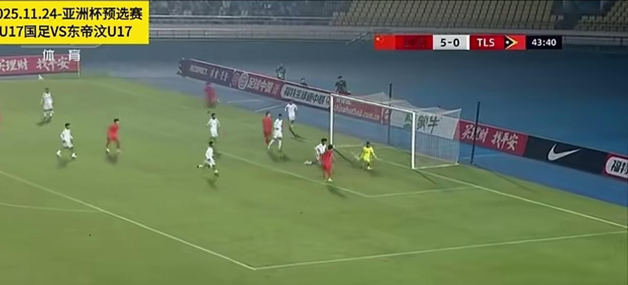 这支中国男足脚下有活儿,让人看到复兴希望! 11月24日晚,U17男足亚预赛A组第二轮,中国队在重庆永川体育中心14∶0大胜东帝汶队,取得两连胜。这场比赛相当精彩,7名球员破门得分,帅惟浩、谢晋和赵松源三人上演帽子戏法,张伯霖梅开二度。 首轮4∶0胜巴林队后,本场阵容有调整。第6分钟,张伯霖补射首开记录,半场6∶0领先。因同组孟加拉队8∶0胜文莱队,中国队需至少净胜9球暂列小组首位。下半场,攻势更猛,最终14∶0获胜。本轮后,中国队与孟加拉队同积6分位居前二,期待他们后续表现! 国足u17 中国U17队 U17足球赛