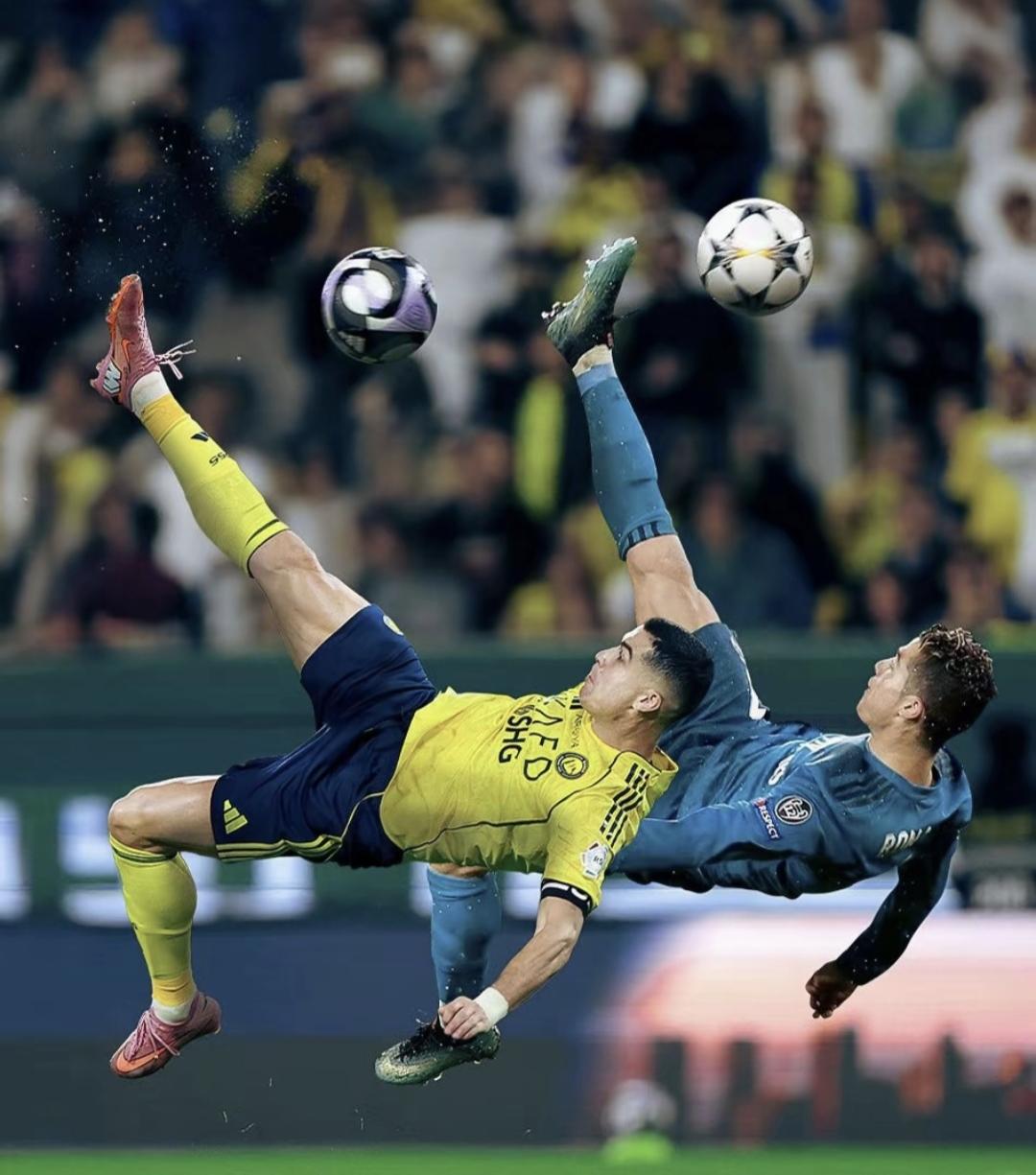 梦回2018都灵奥林匹克的那个夜晚! 在沙特联赛的一场比赛中,利雅得4比1击败对手。C罗在比赛结束前上演了一记倒勾进球,有石破天惊的气势。这个进球跟7年前在尤文的那个夜晚的进球很相似,有机会入选今年的普斯卡什奖十大进球之一。