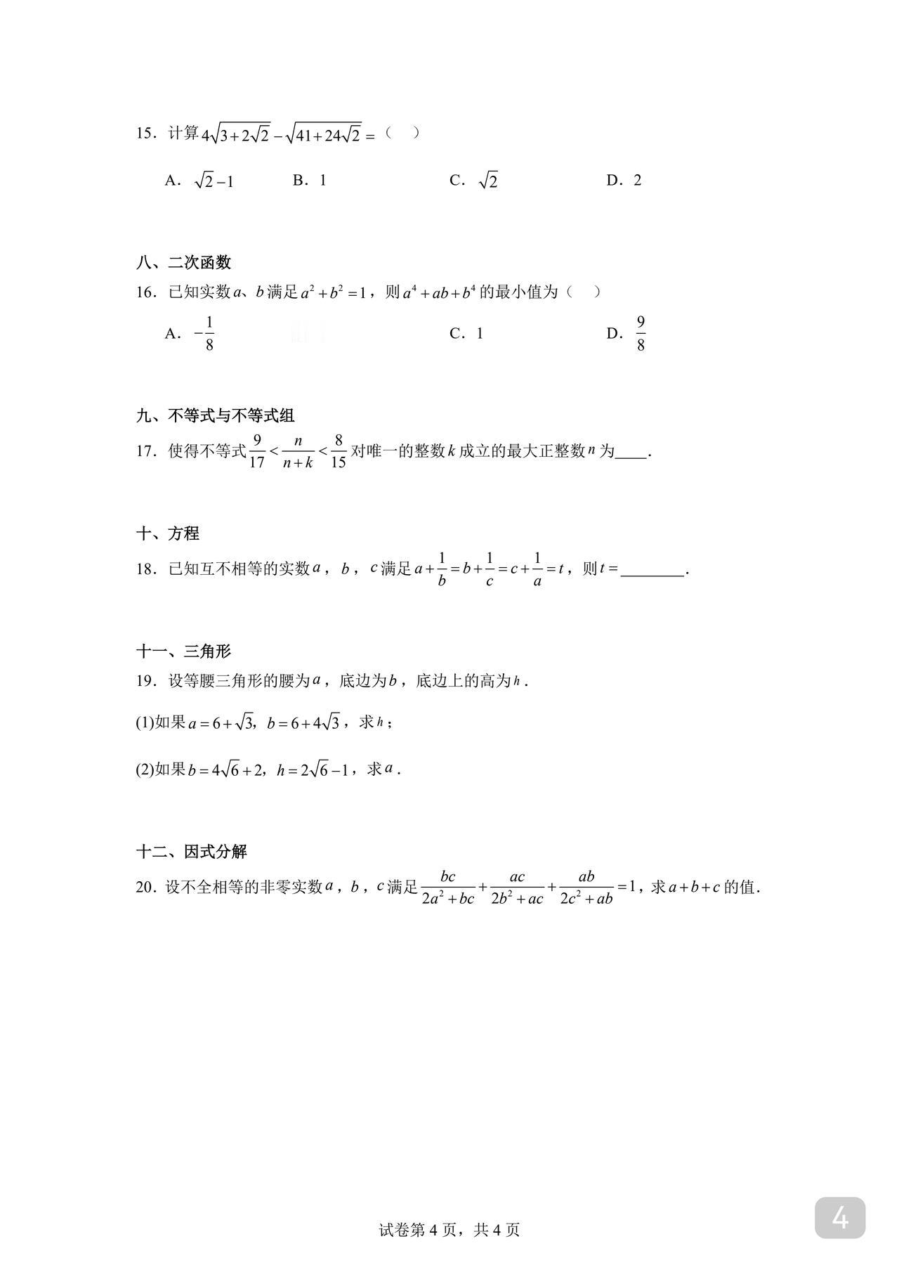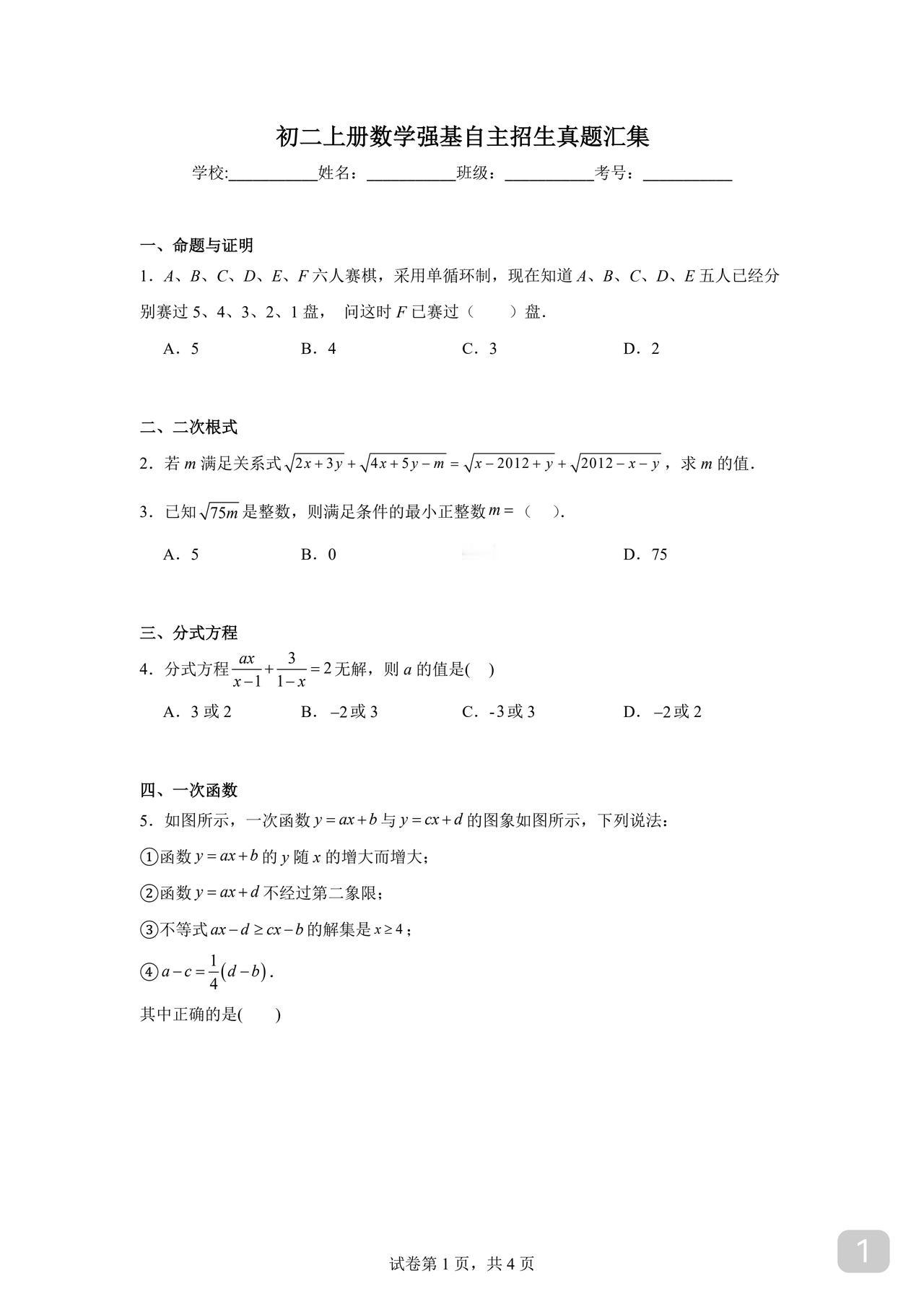 初中数学强基/高中自招 本周我某节课的讲题 选题适中 主要是增强优生的自信 以及对题型有个概览 适用北师大版初二上的同学 非凡数学尖子生培优教辅数学强基初中数学全国通用