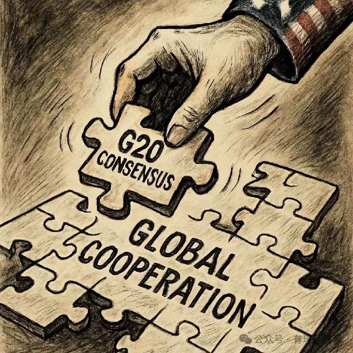 G20打脸特朗普:你缺席地球照样转:G20首次在南非举办,美国特朗普政府抵制参会,要求不准发共识成果,南非硬刚。峰会开幕当天通过122条宣言,美国想交接主席国却被要求对等,只能私下认怂。特朗普破防,本质是美国霸权松动,世界不再美国说了算。