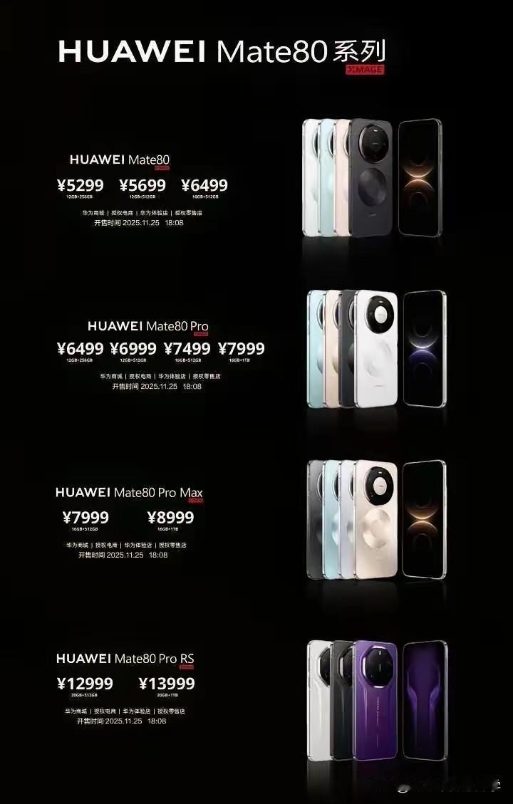 据说这是最新的华为mate80的预估价格, 根据目前各方爆料情况来看八成是靠谱的, 具体价格今天下午2点半就能揭晓了, 不过从17号预热到现在, 现在目标是达到了,到处都是热度。 目前的状态是mate80不用抢, 就是抢不到80pro哪里都抢不到, 预订也订不到,销售直接推80或pro max。 如果从曝光的价格来看, pro的确是性价比极高的。 好的东西大家必然都想要, 不过难道厂家不知道么? 为什么80和pro max反而是备货更多的, pro是备货稀少,难道有钱还不赚么? 这到底是什么备货逻辑,没想通没想通!