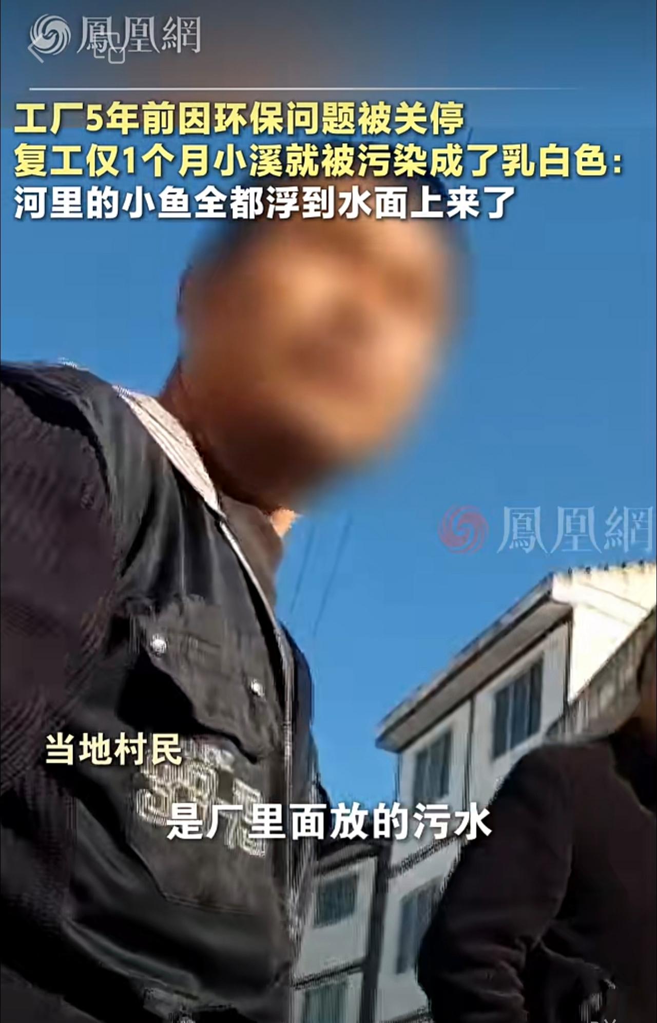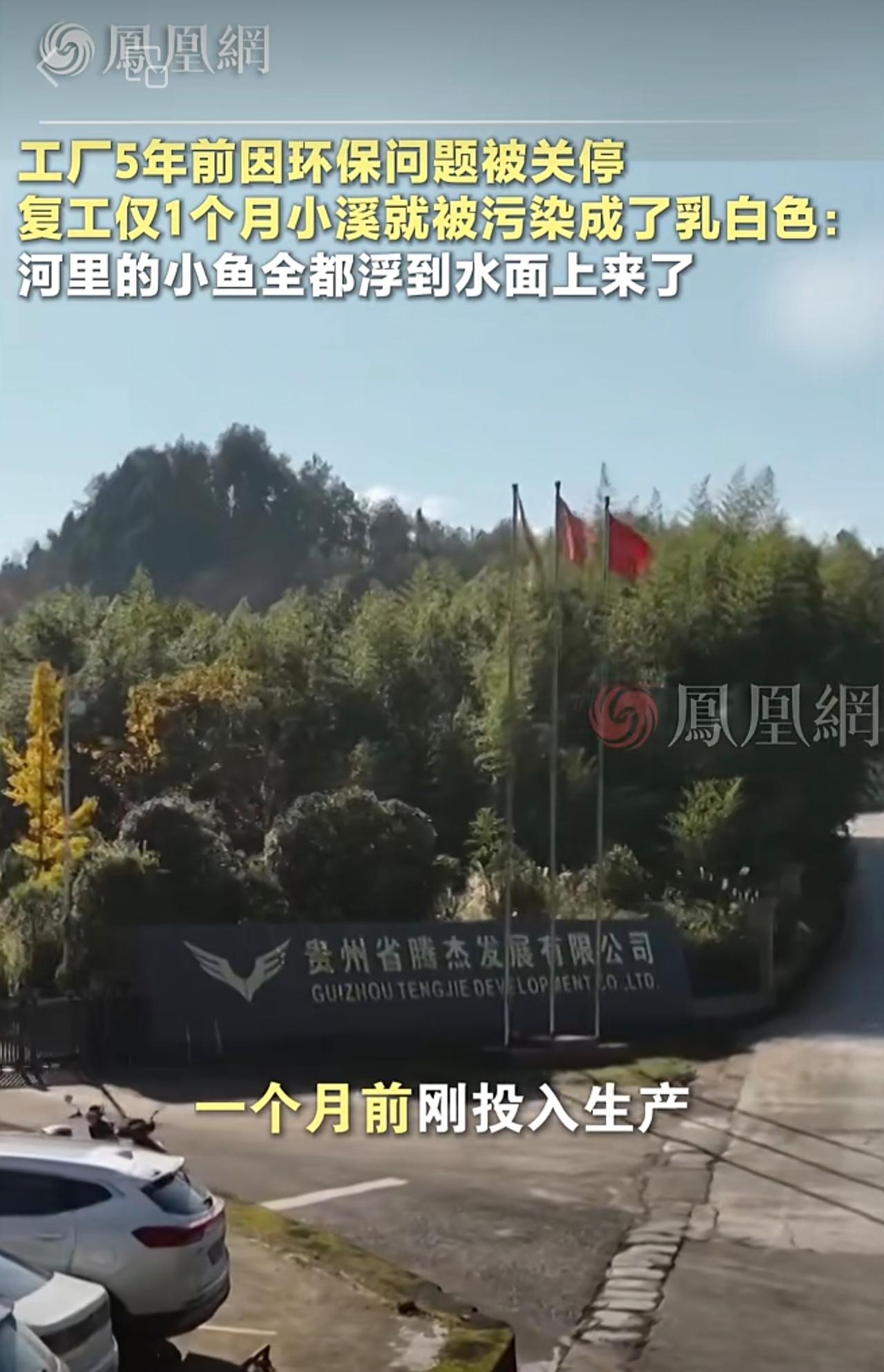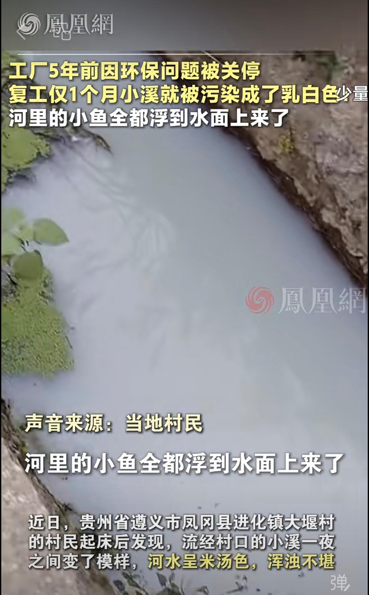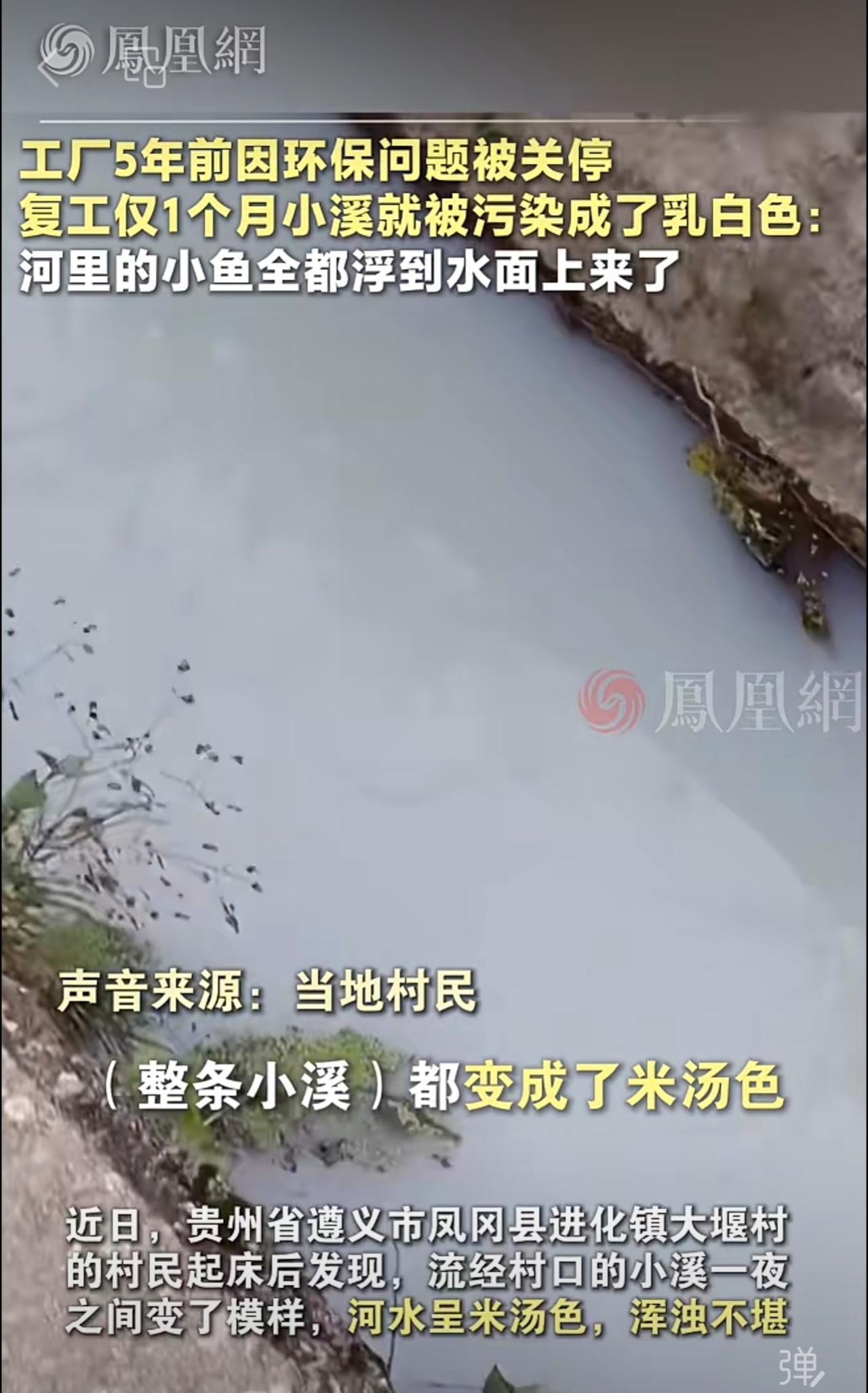工厂5年前因环保问题被关停,复工生产仅1个月,小溪一夜之间就被污染成了乳白色:河里的小鱼全都浮到水面上来了贵州 环保