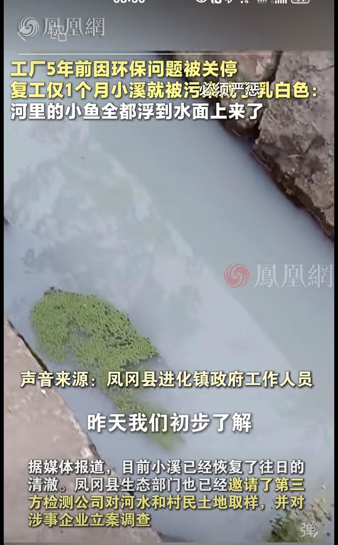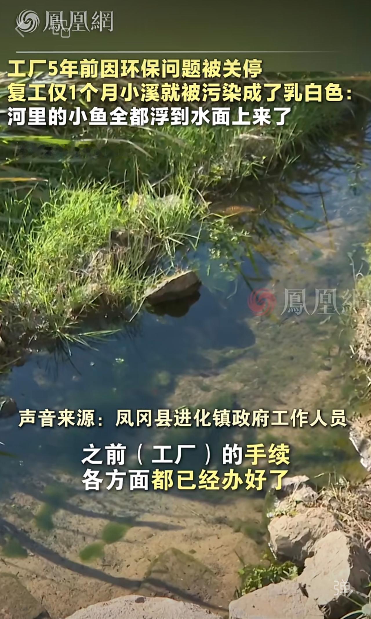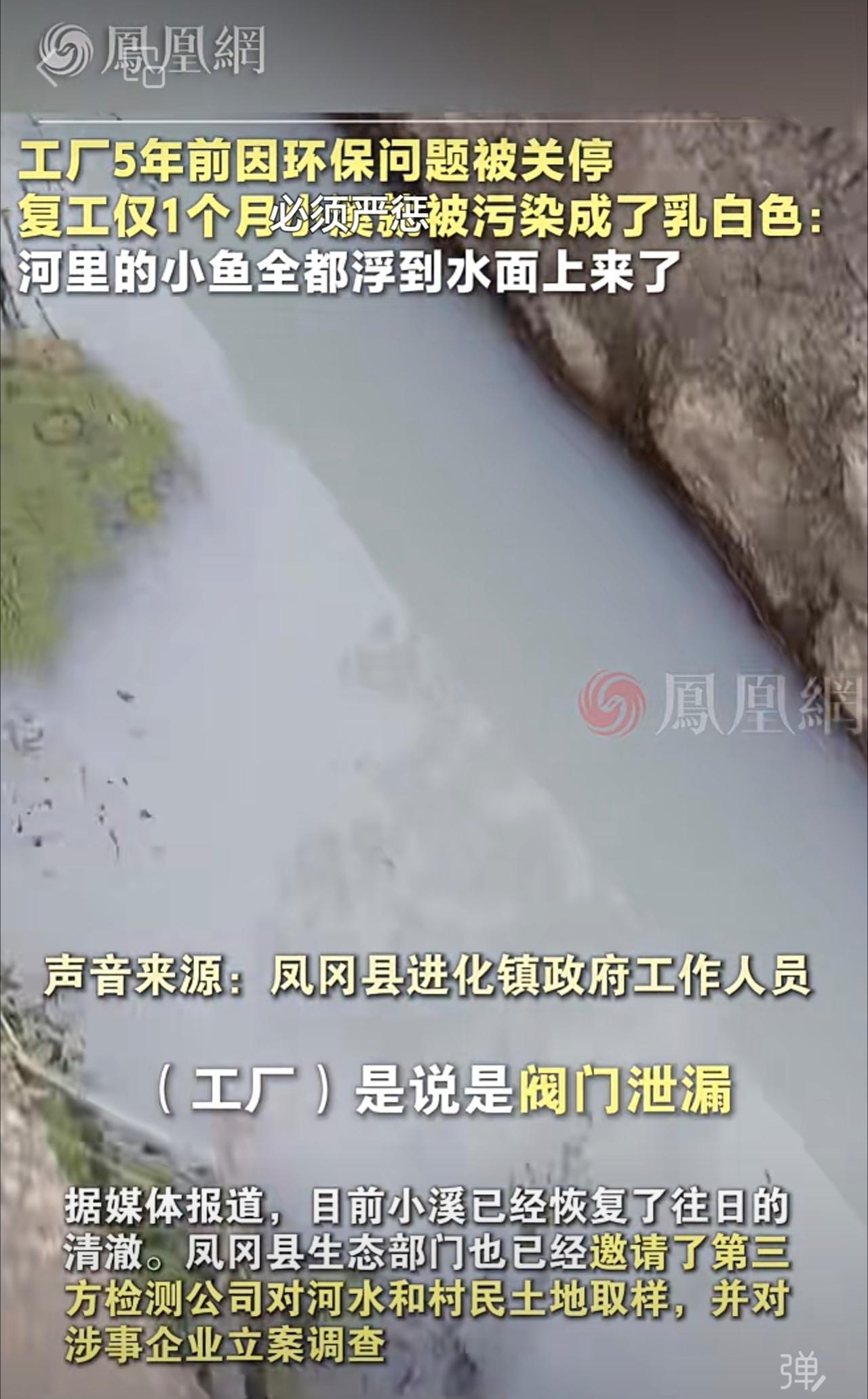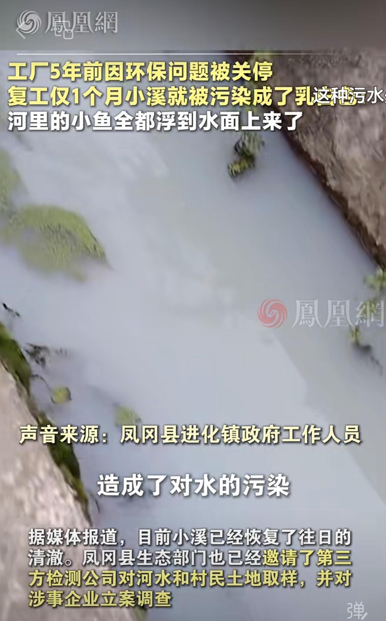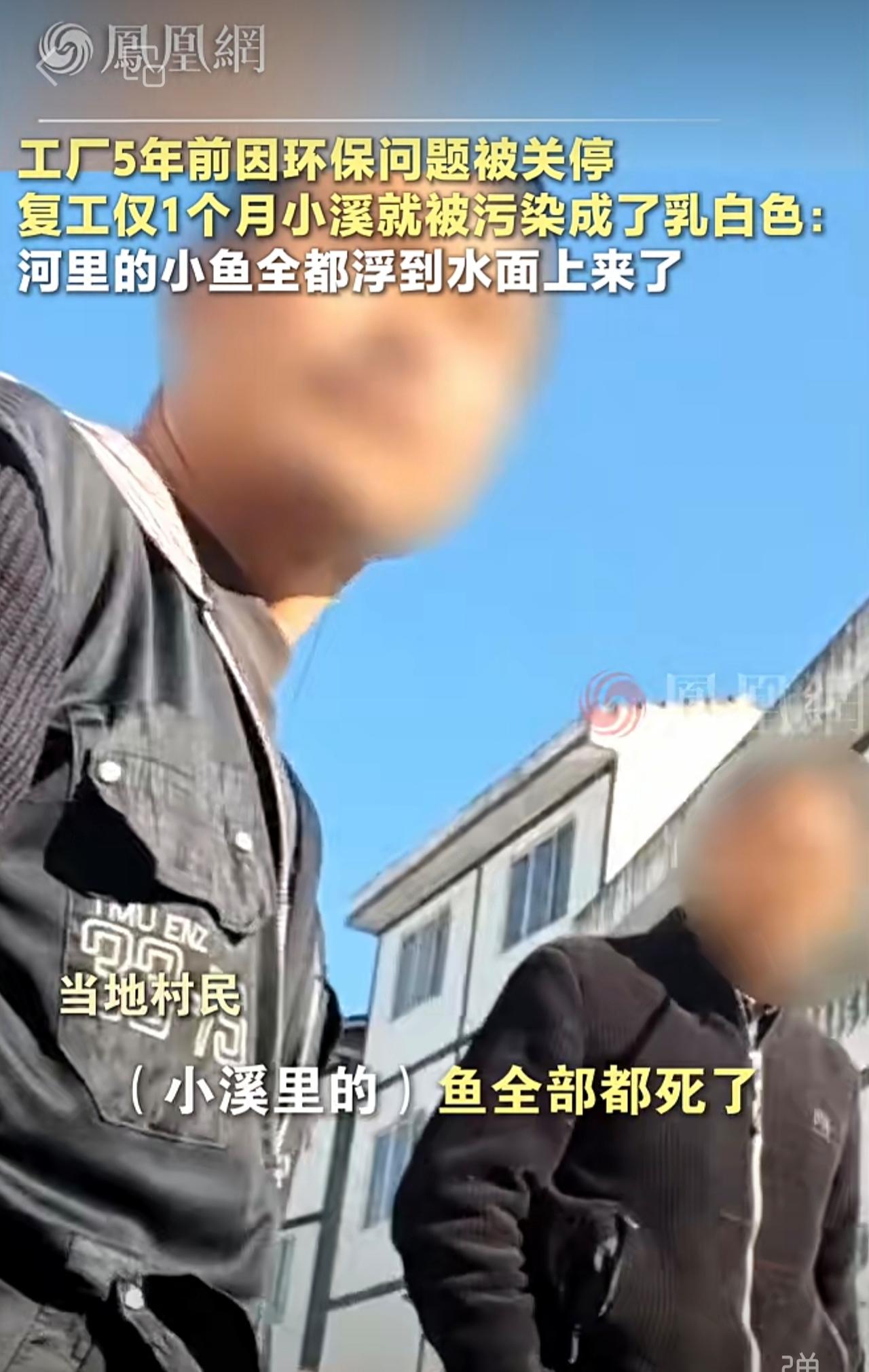 工厂5年前因环保问题被关停,复工生产仅1个月,小溪一夜之间就被污染成了乳白色:河里的小鱼全都浮到水面上来了贵州 环保