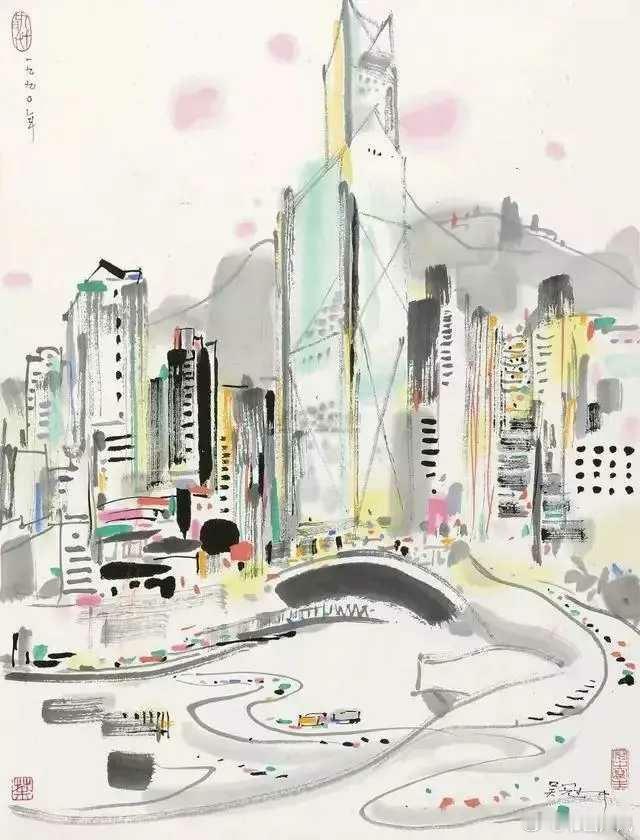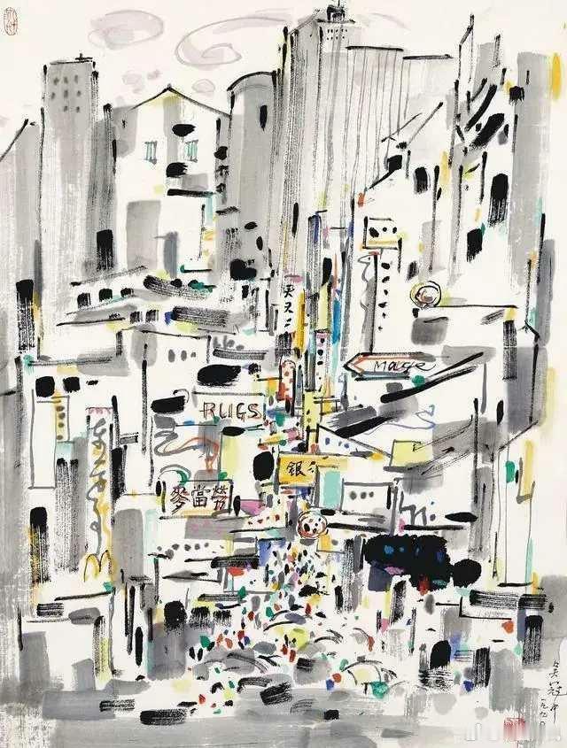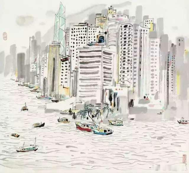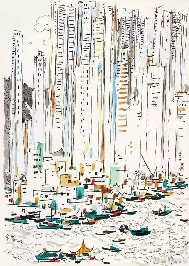 吴冠中画香港。吴冠中非常喜欢香港,他临终前一个心愿就是将他的四幅作品捐赠给香港艺术馆。钟情香港,因为这里中西文化结合。吴冠中亦说过,香港待他的画甚善,保存甚佳。