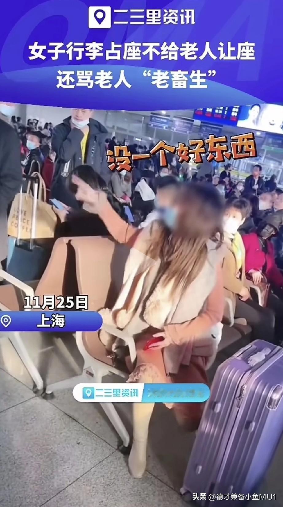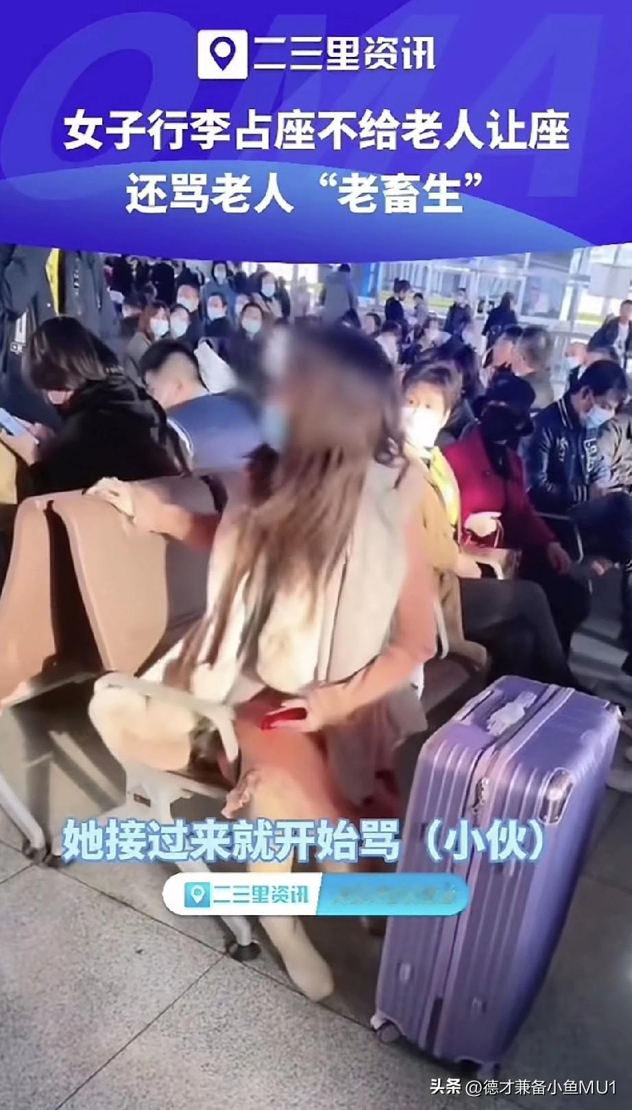 上海某高铁站,一名女子占了两个座位。这时,一对年迈的老夫妻走到女子身旁,请求她让出一个座位,称老爷爷腿脚不便,想让他坐下休息一会儿。女子却拒绝了,坚称这座位是她的。老爷爷指出这是公共座位,双方随即争吵起来。女子开始辱骂两位老人,言语十分难听。 之后,这对老夫妻无奈离去,可女子仍不罢休,继续叫骂。邻座的小伙子看不下去,指责女子一人占两个座位不对,还辱骂老人更是不应该。女子又转而辱骂小伙子。此时,小伙子刚好到了检票时间,便起身离开,不再理会女子。 对面的两位女子也看不下去,劝女子说她这样不对,把包拿走让个座就行。女子反倒骂她们:“搞笑,狂犬病犯了,逮谁骂谁。” 此事有视频为证。在公众场合骂人,是可以进行行政拘留的。骂人可拘留五日,该女子的行为已经构成侮辱他人。另外,工作人员也存在失职,管理员到底在干什么?在他们的管理范围内出现这种不合理的事,为何不管?