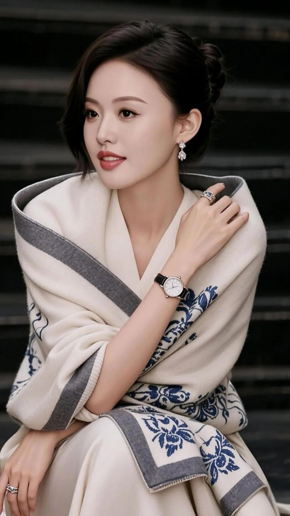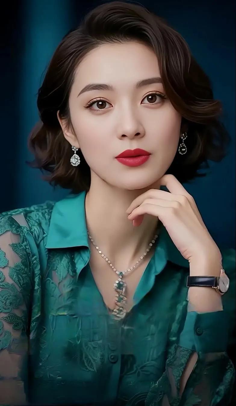 优雅黑发美人,闪耀珠宝项链,红唇白裙,气质非凡!