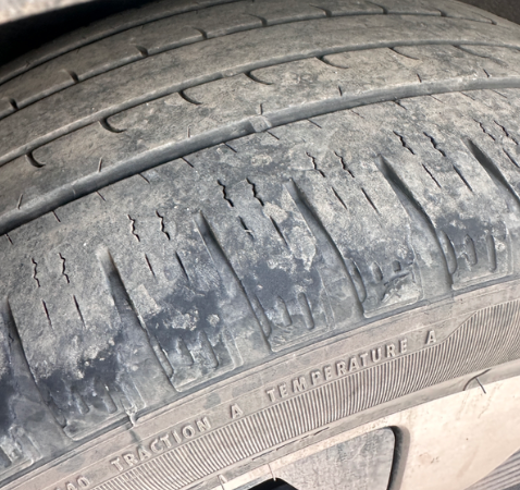 1,右前轮爆胎。 2换右前轮轮胎并做动平衡后,方向盘依然向左偏。 3底盘排气管隔热罩过路磕掉。 4外放电功能不知为何无法启动。