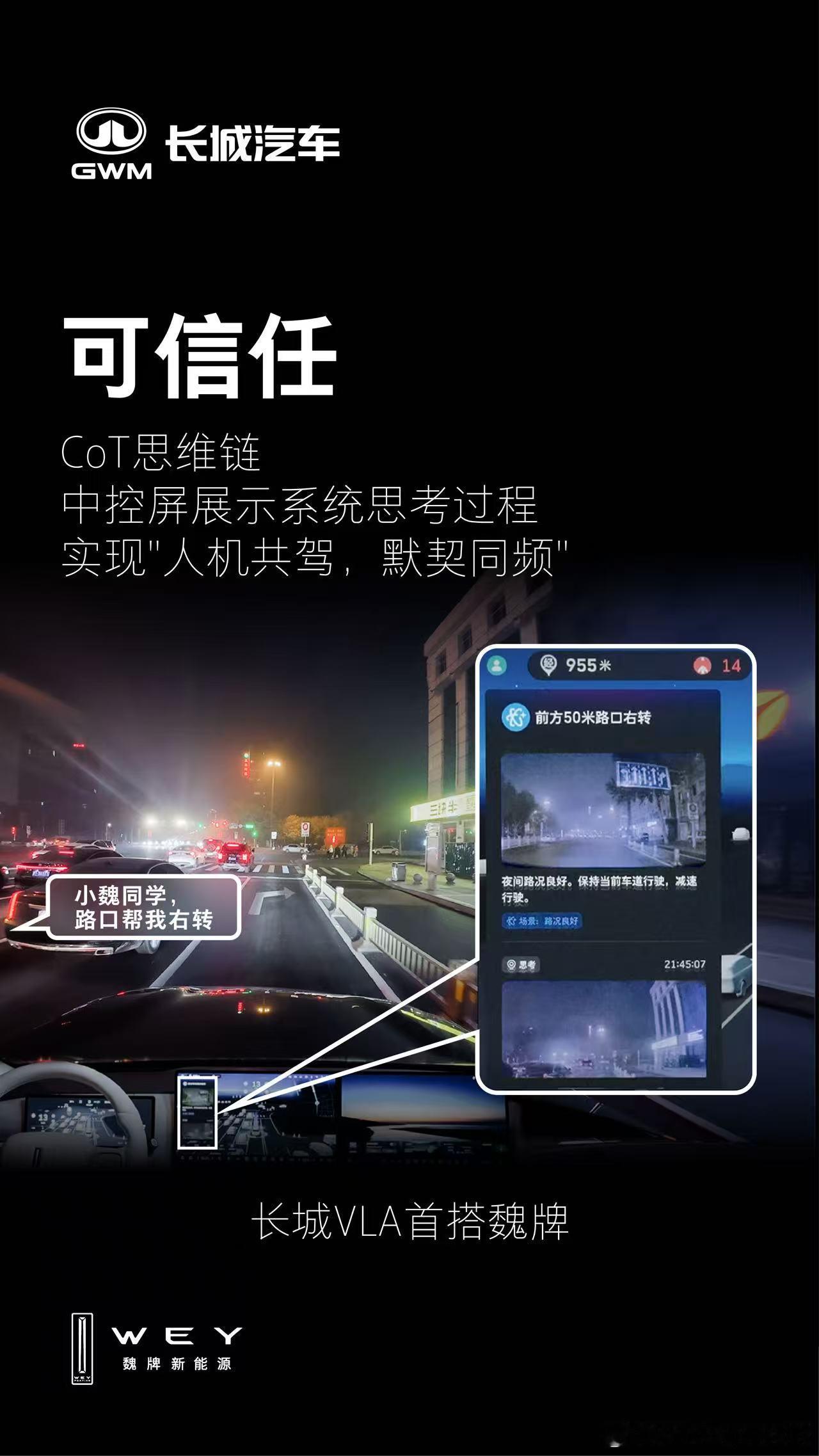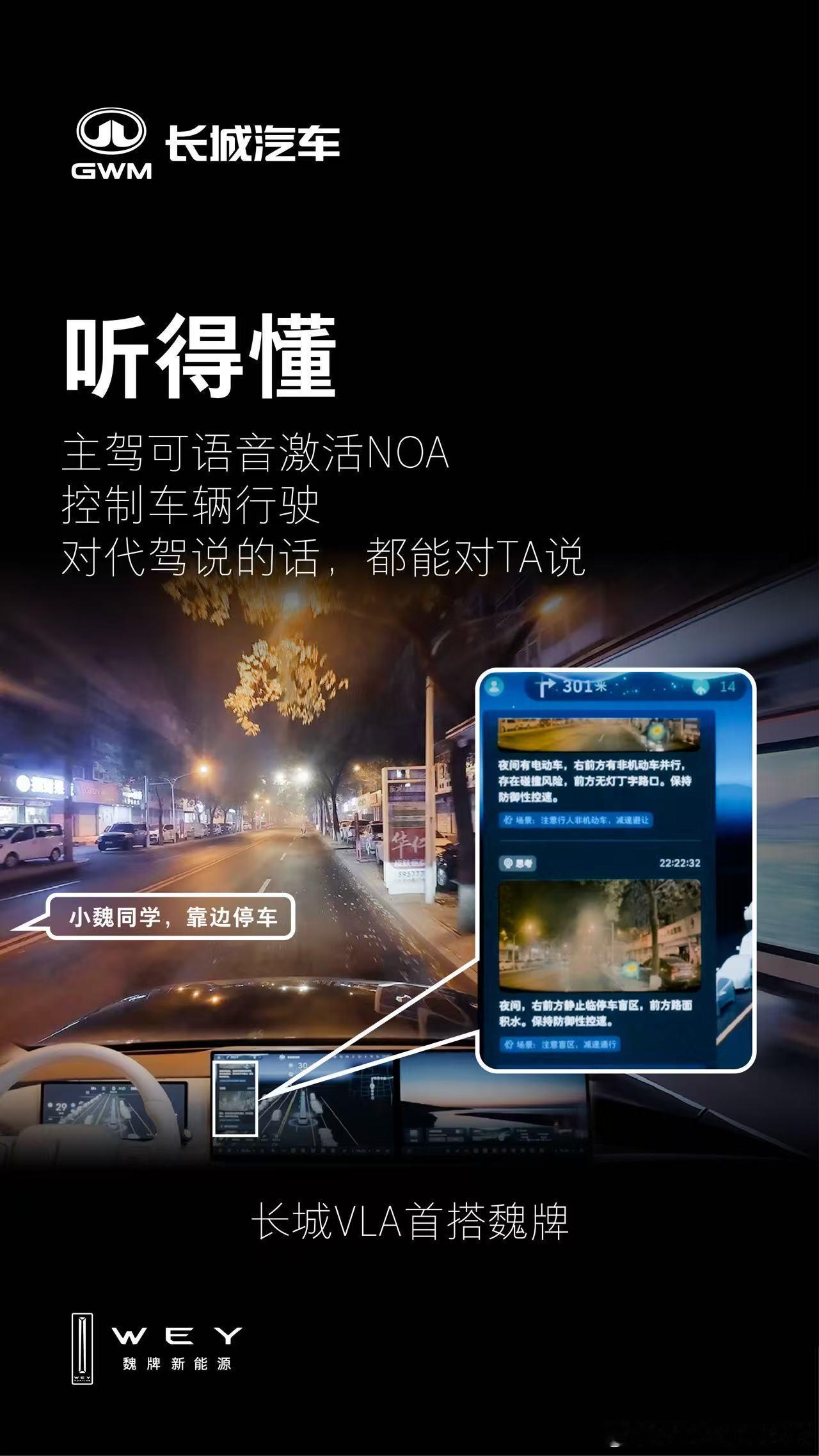 你的“大师级出行伙伴”,正式登场!长城VLA首搭魏牌,为您带来一位真正的出行伙伴。它,能听懂您的号令,掌控全局;它,能及时预判风险,防患未然;它,能全面理解路况,从容决策;它,将思考过程透明呈现,让信任成为本能。从此,人机共驾,默契同行,共赴每一段安心旅程。