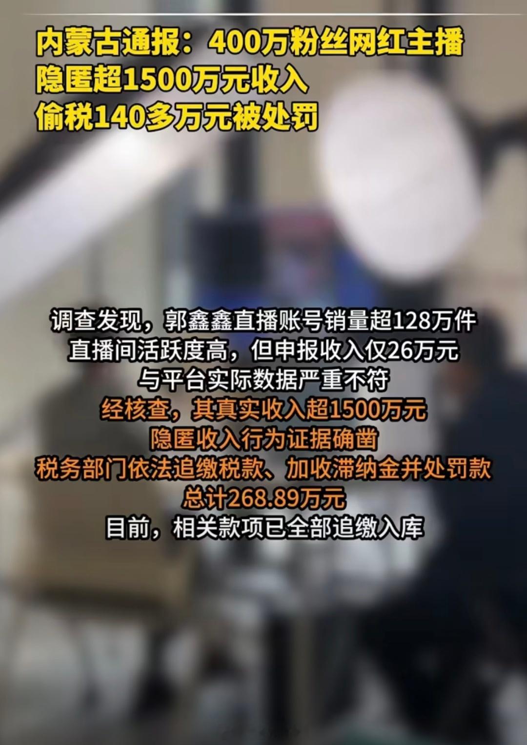 内蒙古400万粉丝网红主播,1500万收入,直播带货128万件!果然赚钱!开始查网红主播偷税漏税了!