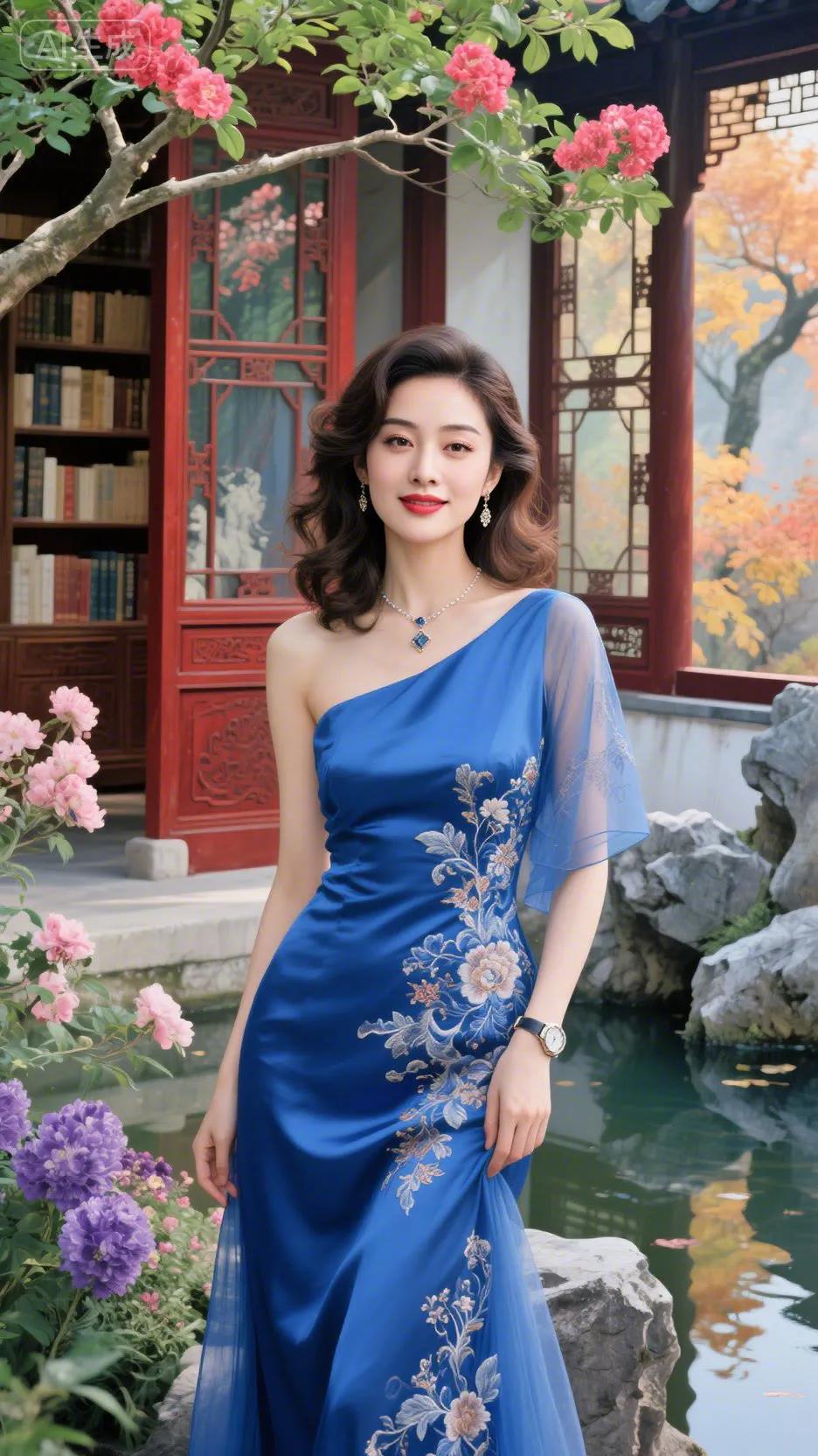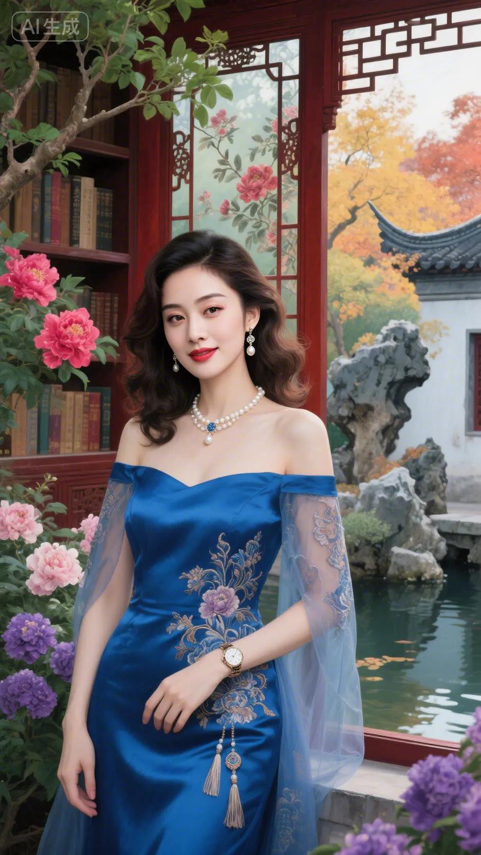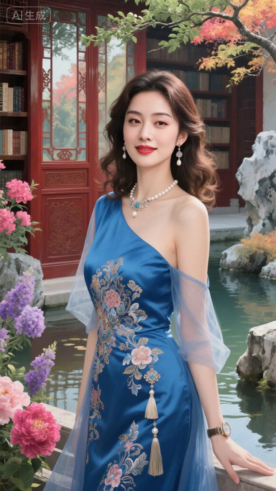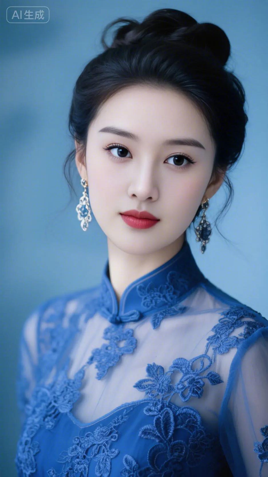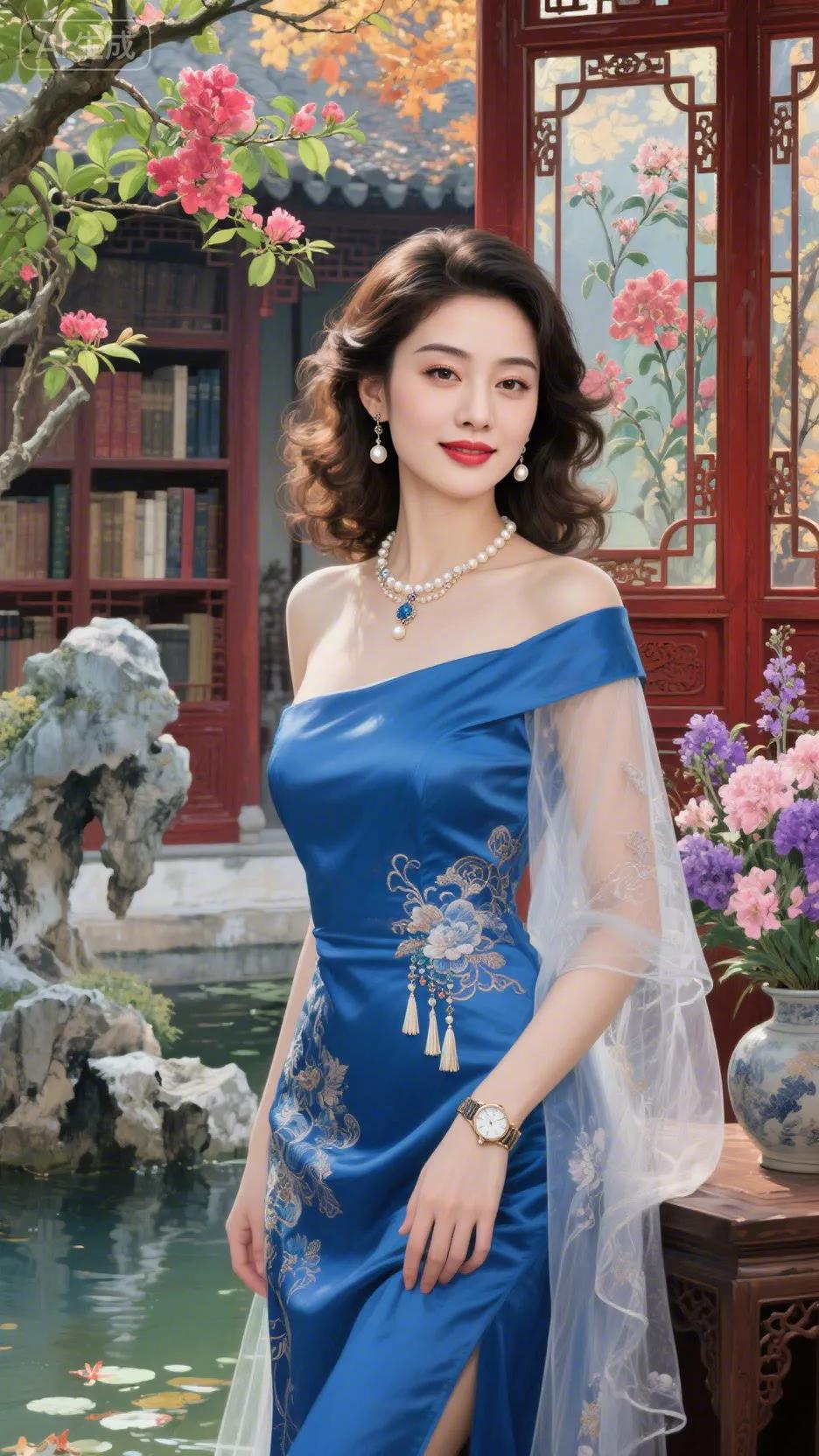 古典旗袍美人,优雅姿态,花饰点缀,韵味十足。