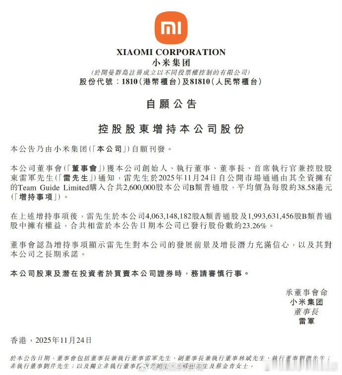 一亿港币对于雷总来说是小钱,相当于你有几千万的身家,花了一万块买了个股票。之前有