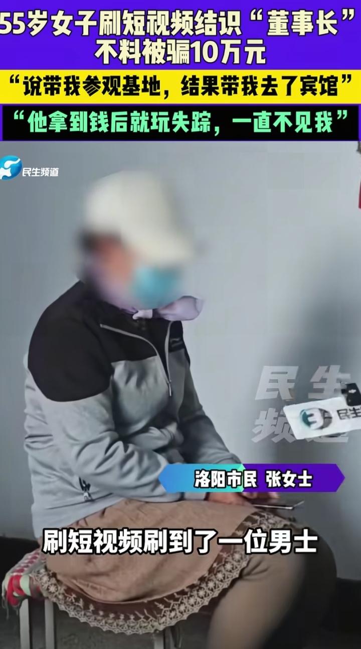 被蠢哭了,河南洛阳55岁阿姨刷短视频认识“董事长”,如今感觉一阵后怕。 洛阳张