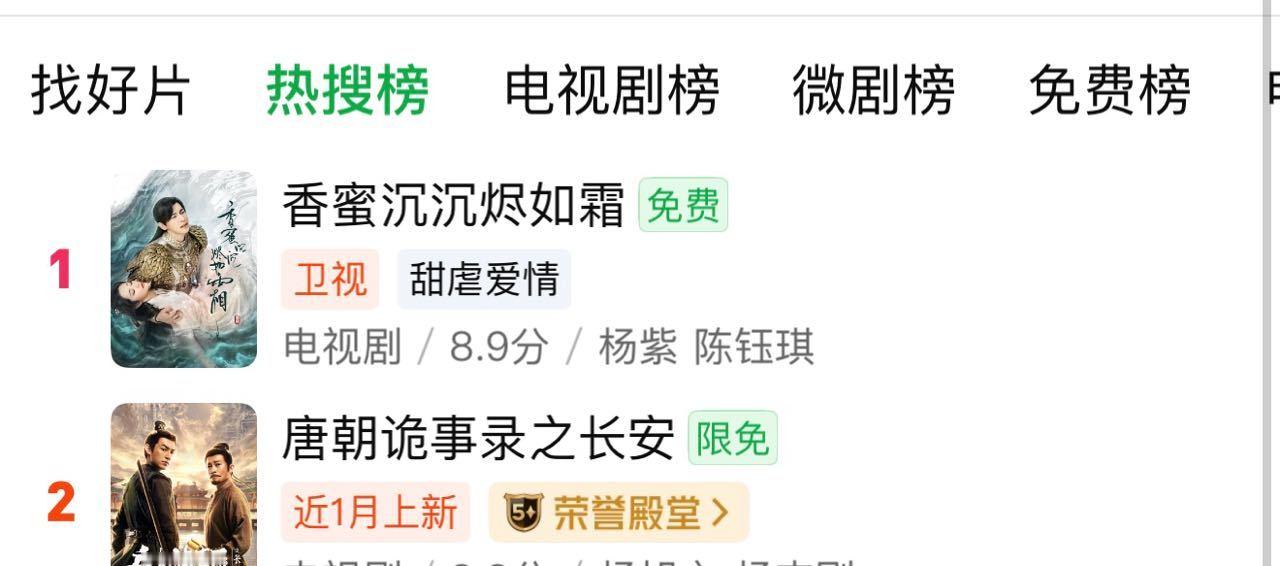 香蜜现在是爱奇艺热搜榜和电视剧榜榜一杨紫🐮