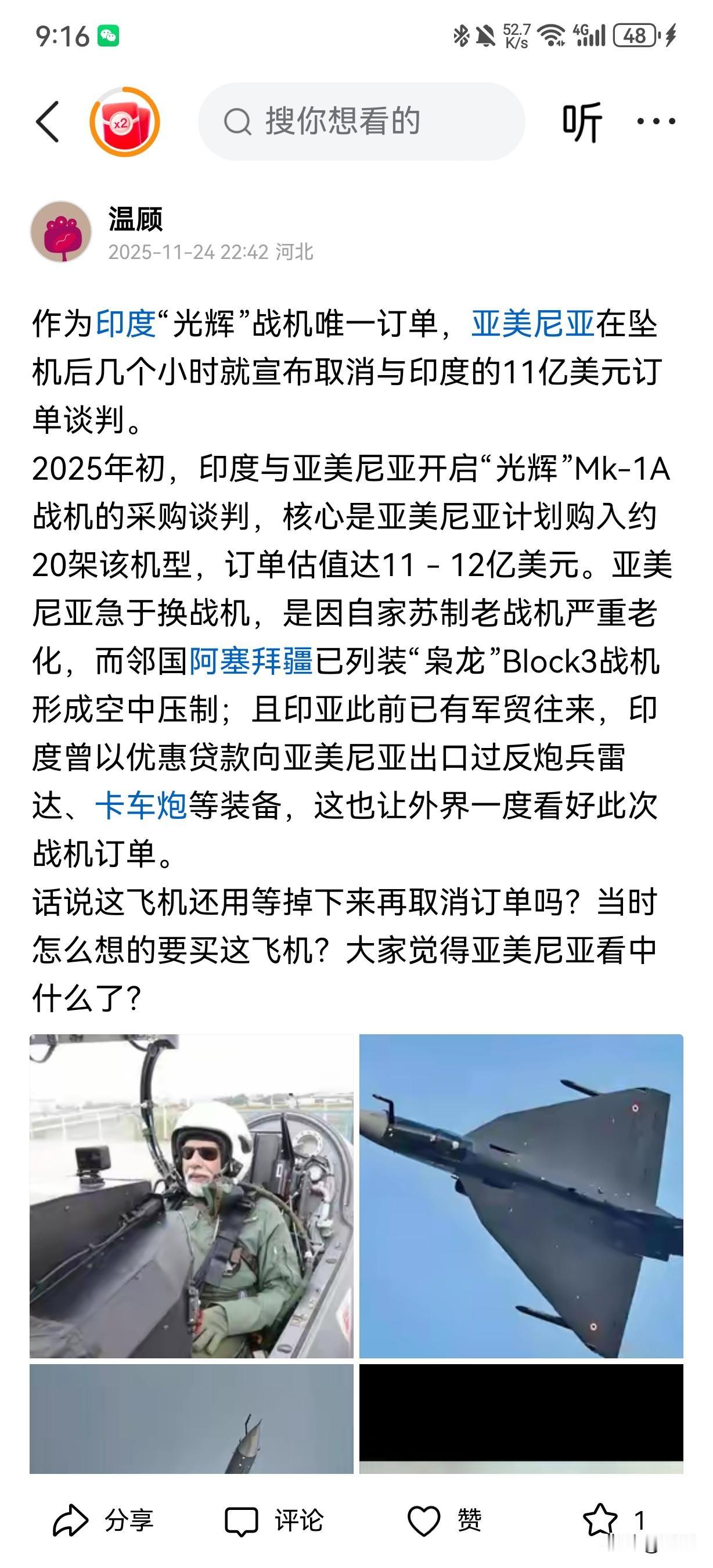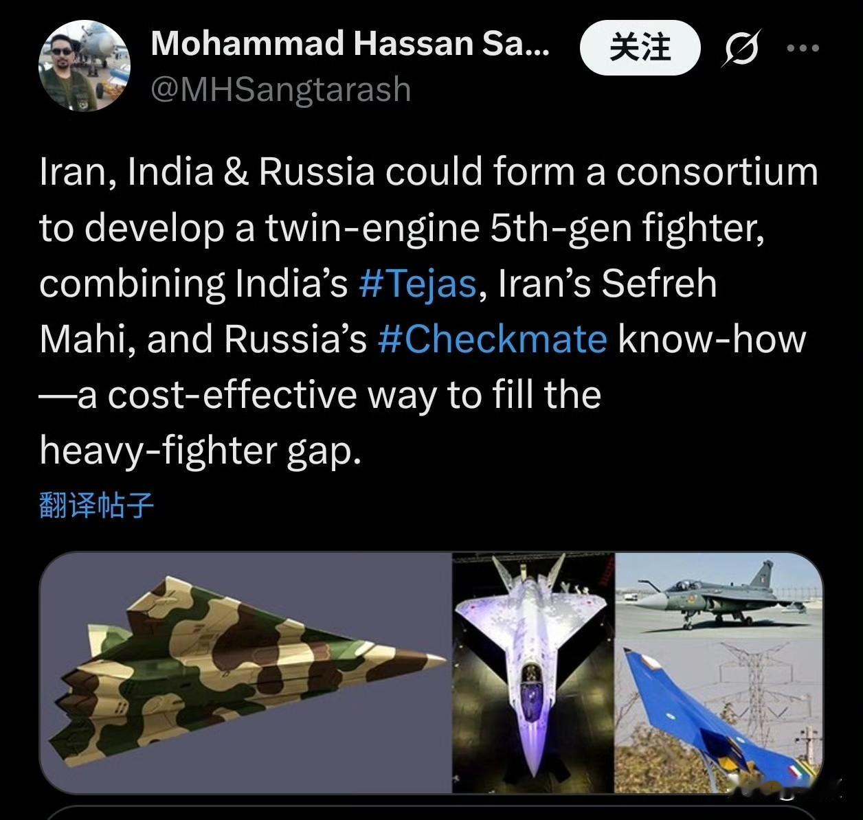 突发!光辉折翼订单泡汤,三国六代机联盟能救场? 在X平台上,有伊朗网友提议伊朗、俄罗斯与印度组建六代机研发联盟。 而在“光辉”战机坠毁数小时后,亚美尼亚便取消了价值11亿美元的“光辉”战机订单。 “光辉”折翼,有人从中看到了新的合作希望,有人则及时避开了风险。或许有人相信,这样的研发联盟能重新赢回亚美尼亚的大额订单。