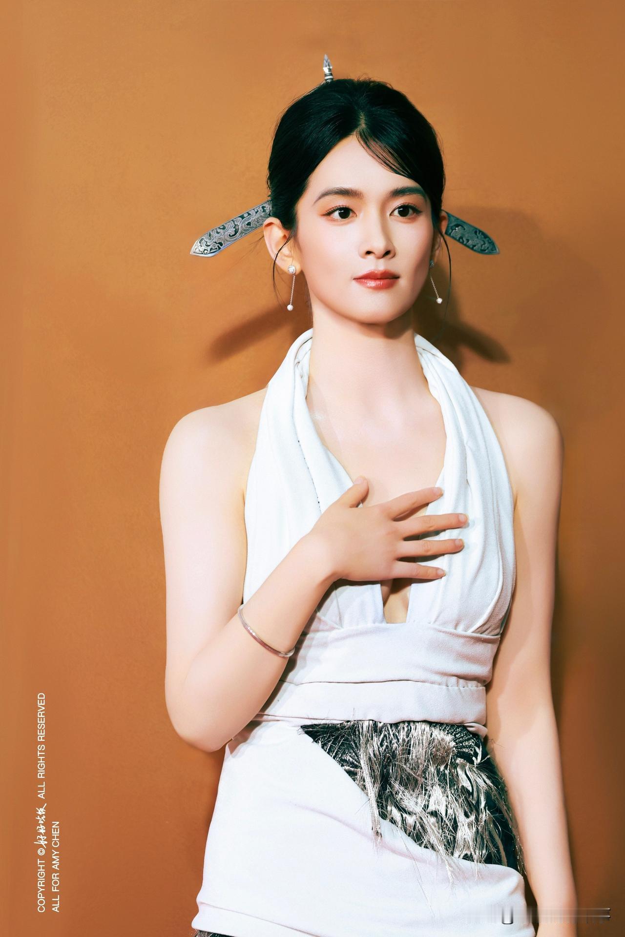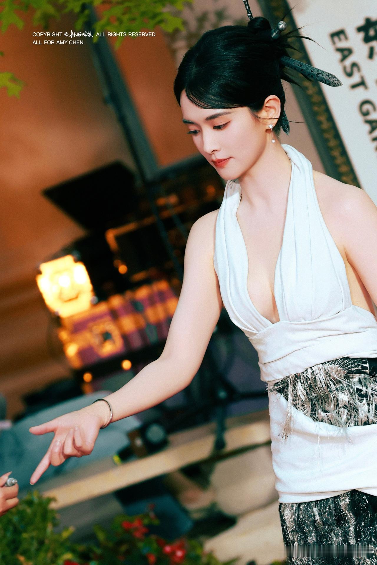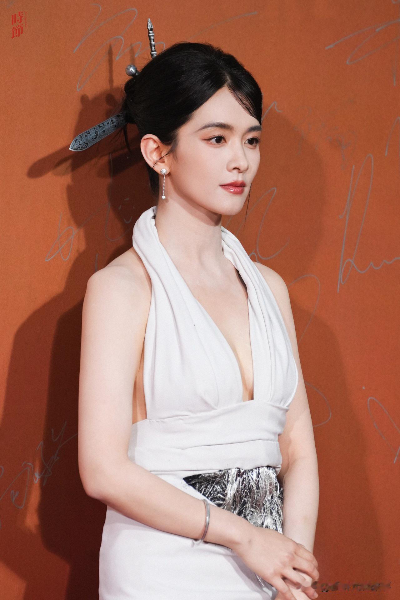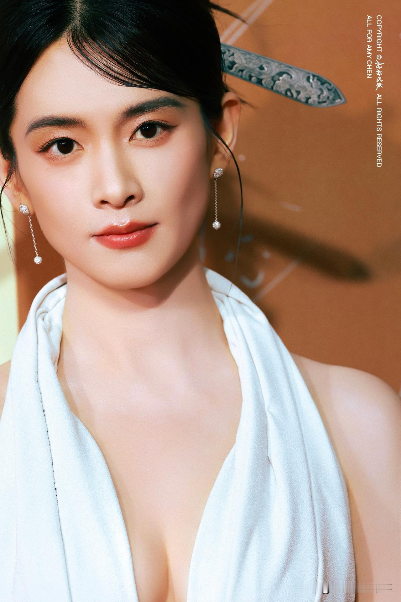 陈昊宇深V造型:刀簪配白裙,性感里藏着“侠气” 陈昊宇这套造型把“反差感”玩明白了:深V白裙裹出纤腰,露肤度恰好卡在优雅与性感的边界;发髻上别着两把雕花短刀,冷兵器的锐利中和了裙装的柔媚,像“刚卸甲的女侠客赴宴”。 红唇衬着冷白皮,耳坠的珍珠又添了点娇憨,镜头里抬眼是冷艳,垂眸带笑意——性感不是露得多,是刚柔撞出来的张力。