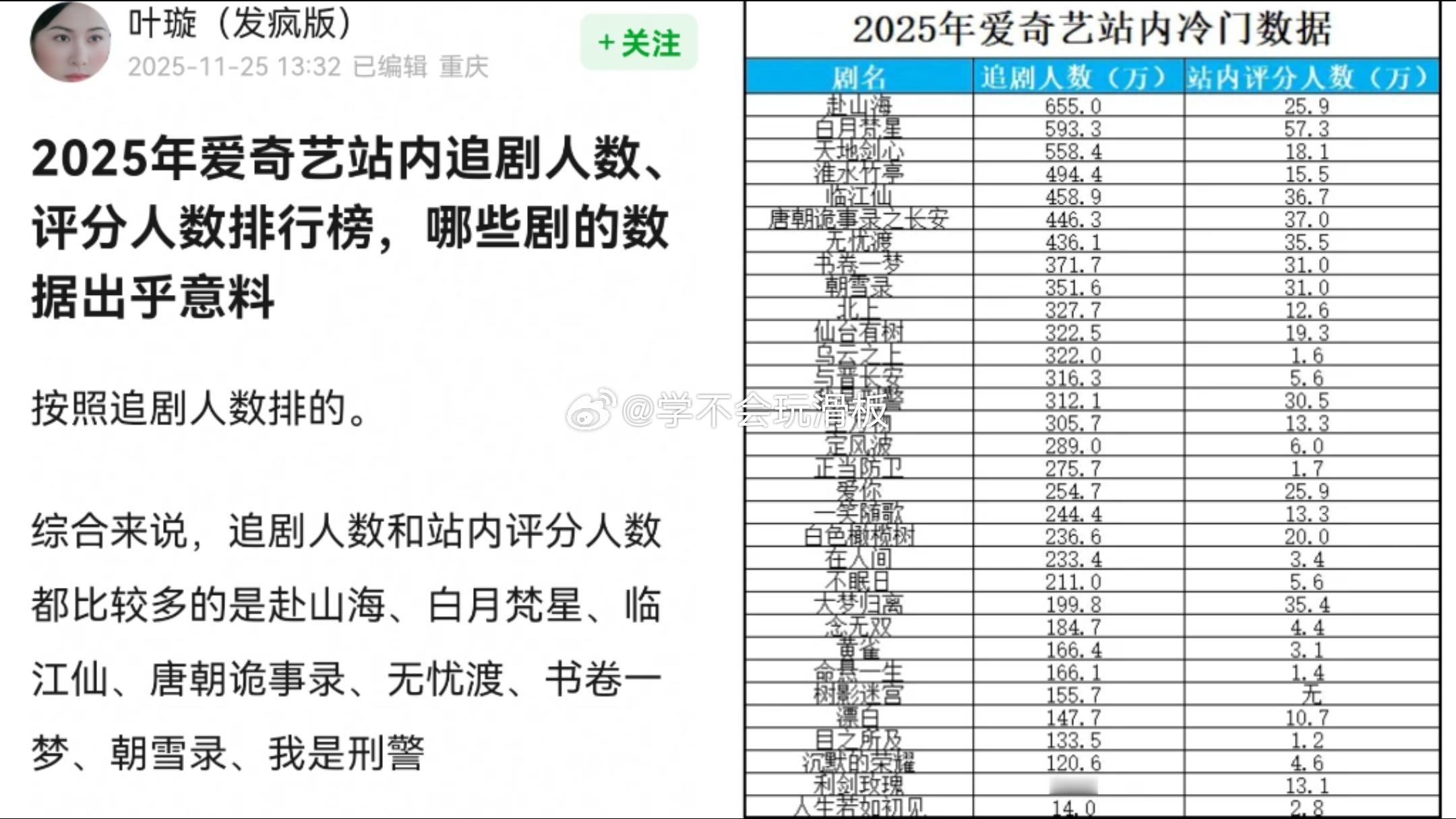 爱奇艺极速版可以看到今年播剧在追人数:9月份开播的《赴山海》在双平台联播,在追人