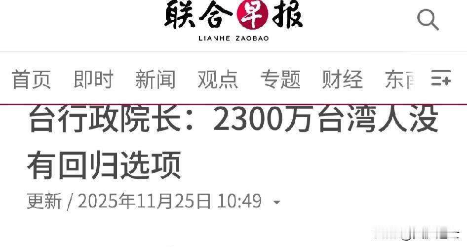 台湾民进党“行政院长”说,台湾2300万人没有回归选项? 这应该近年来是台湾行政机构“首长”发表的最强烈拒统发言,我就想问问你说这话时候有没有问过全台2300万老百姓?岂是你一个小小的官员就能代表的?民进党为了自身利益已经忘了根本,走进了死胡同,真应该定点清除他们。