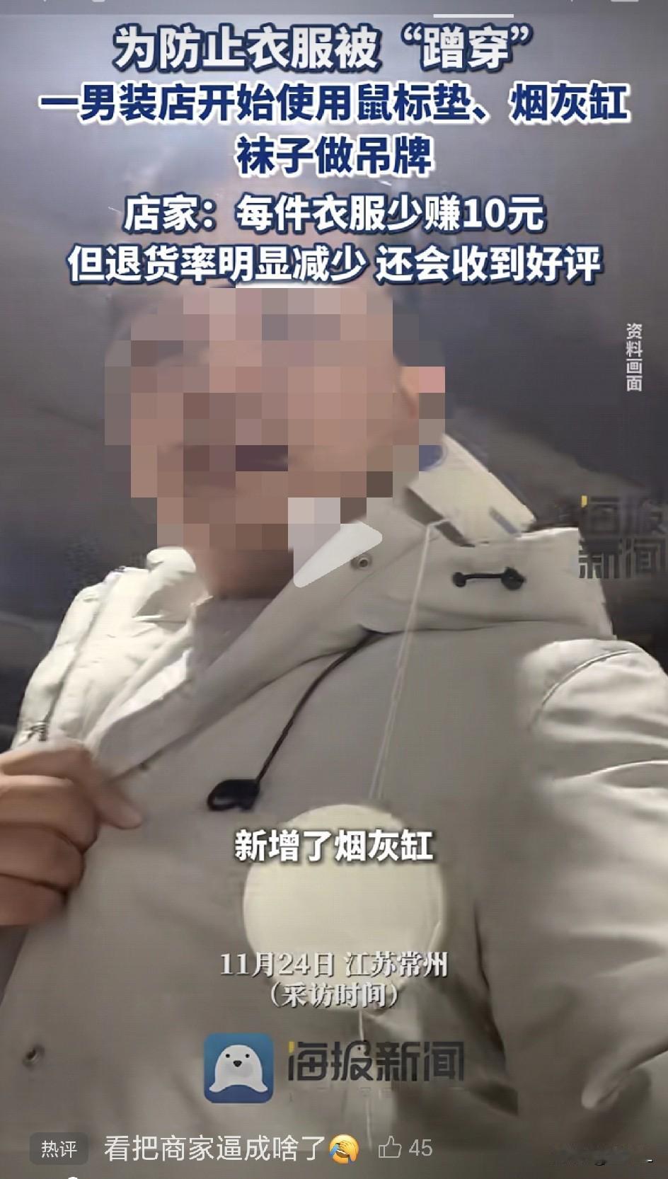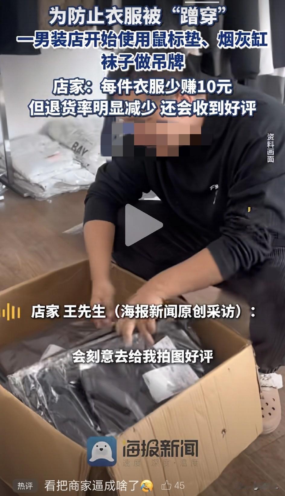 防退货神器?男装店主一个“爆改”,竟让销量暴涨!网友:快给我发带吊牌的衣服! 近日,江苏常州,一名男装网店店主王先生,因为爆改服装吊牌,竟然意外引发了销售热潮,每天的订单量居然达到了两三百单。 这些年女装的高退货率,逼着商家绞尽脑汁开始制作巨型吊牌、密码锁等等,用来防止衣服被穿后再退货的白嫖事件。 这一现象在网络上引发了热议,也给了王先生启发,进行了一场别出心裁的“吊牌革命”。他试着用一次性烟灰缸、鼠标垫,后扩展至内裤、袜子等实用物品,来做服装的吊牌。 这样别致的吊牌,不仅仅能够完美的防恶意退货,也因为都是实用物品,居然受到了顾客们的一致好评。 最初仅定制40张鼠标垫吊牌,视频发布后迅速售罄,销量激增至300多单,顾客下单时还可备注选择吊牌类型。 据说鼠标垫吊牌成本约10元,由王先生从自己的利润中承担额外费用,未转嫁消费者。 现在有网友在积极“许愿”新吊牌类型(如枕头、眼镜布),认为此举兼顾了环保与实用。 未来,王先生计划推出汽车玻璃水、擦玻璃布等更多实用吊牌,强调“卖服务体验”的经营理念。 原本是商家的无奈之举,居然被王先生找到了新的商机。将行业共同的“高退货率”难题,转化为自己独特的解决方案,从同质化竞争中脱颖而出。 将一个微小的吊牌,做成了连接商家与顾客的情感纽带,完成了一场精彩的“危机公关”与“品牌营销”。 真正的创新,始于对用户需求的深刻洞察,成于利他共赢的商业模式。 信息来源于海报新闻,侵联删!
