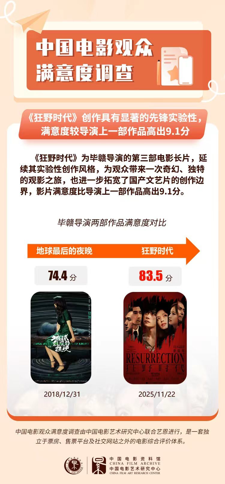 【】毕赣导演的第三部长片收获观众满意度83.5分,较其上一部导演作品高出9.1分。其中,影片“创意新颖度”“主要演员表演”位居今年9月以来调查影片首位。该片由 领衔主演, 特邀主演, 特别主演。