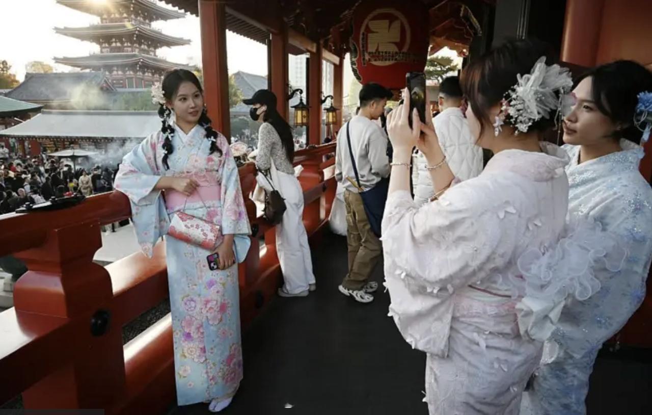 国人为什么喜欢去日本旅游?据统计,中国游客在2025年前9个月占所有访日游客的23%,排名第一。与此同时,中国游客的购买力也很高,中国游客人均消费约1.25万元人民币,是各国访日游客平均水平1.03万元人民币的122%。图/在东京浅草寺观光和拍照的中国游客。