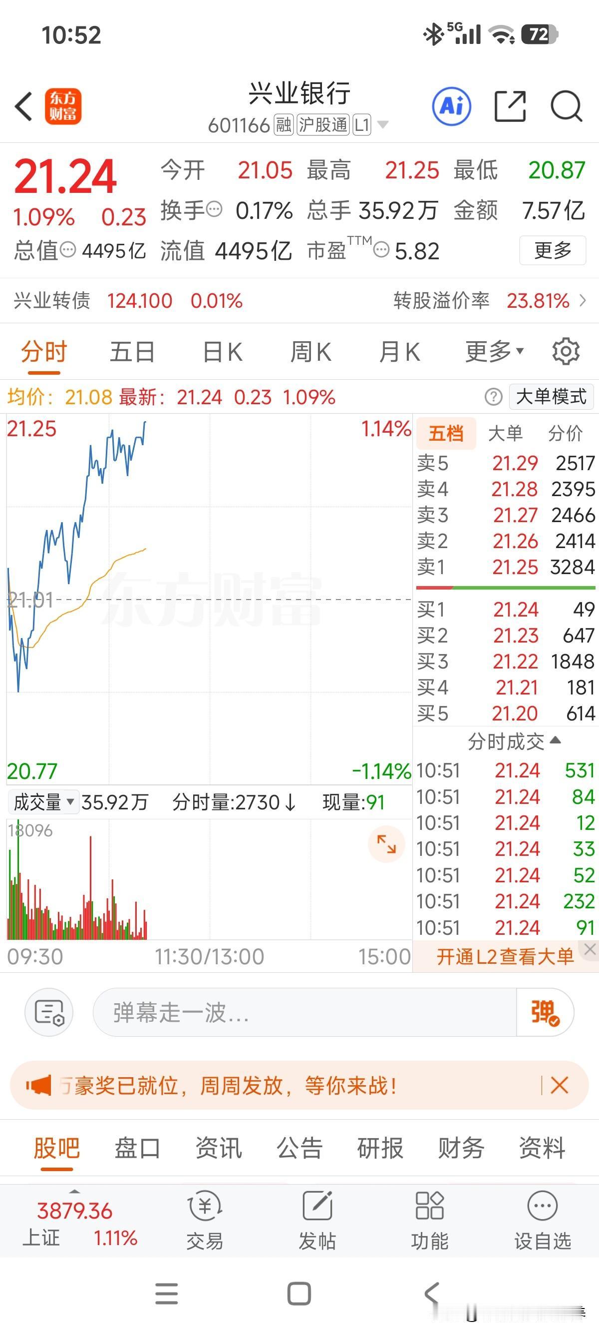 早盘最低点20.87元,如果从技术走势来看,调整下穿短期均线,下方MACD也不乐观! 但对于这种绩优股参照多了,反而不好操作,大道至简,5%股息率是个参考指标,另外转股价21.19元也是个参考值,低于以下位置,守着收息就是了! 早上一个小会议错过了21以下的机会,未操作,手上继续总8成仓位!