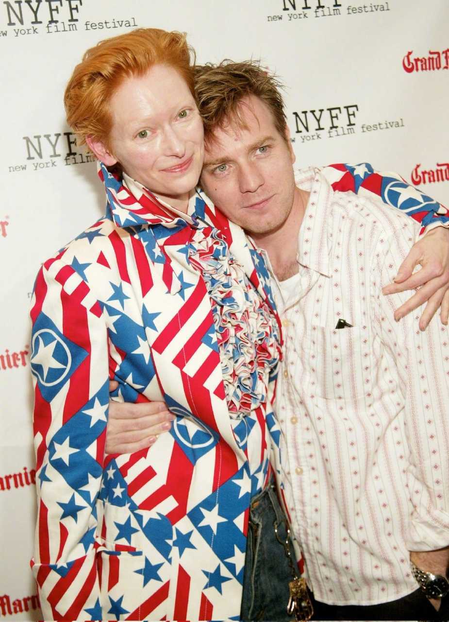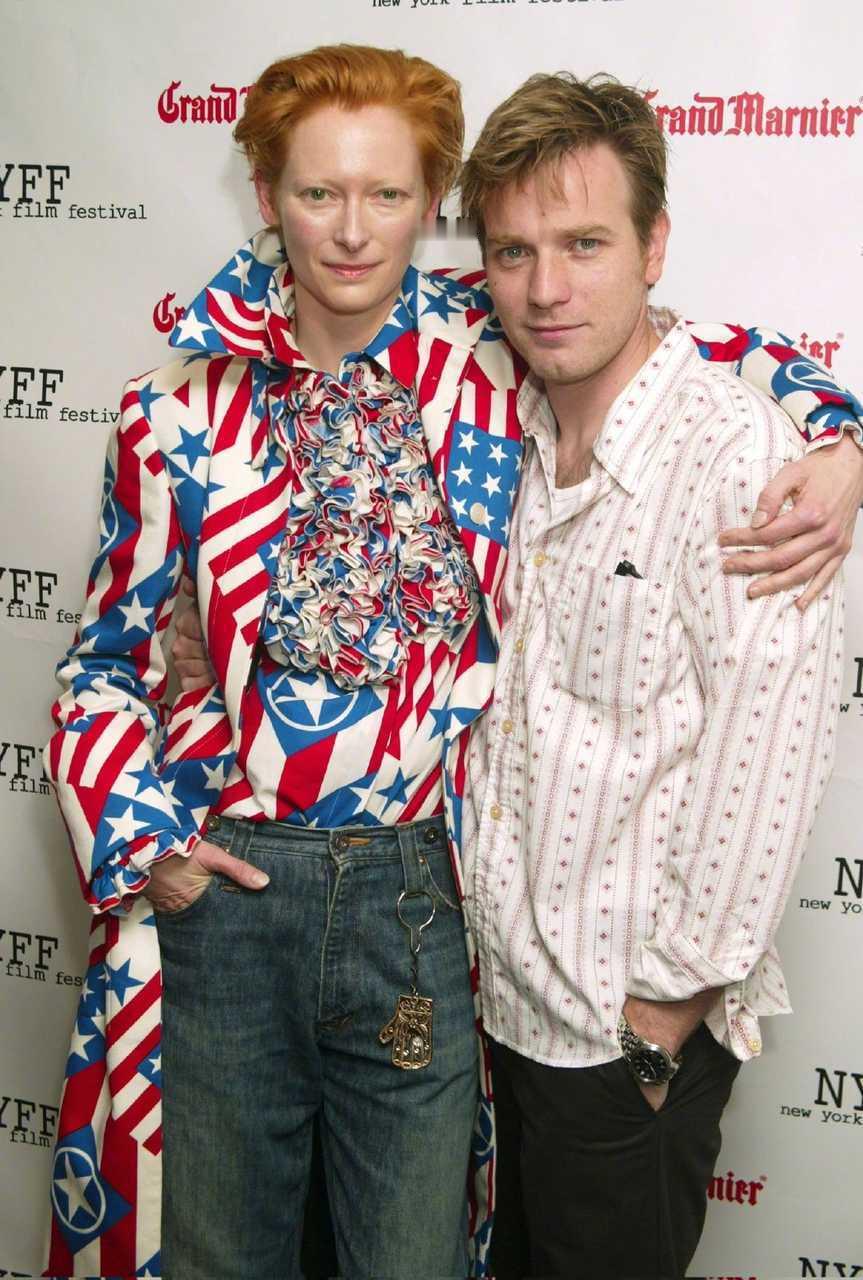 【来自投稿】蒂尔达·斯文顿和伊万·麦克格雷戈在纽约出席电影《少年亚当》首映礼,2003年。