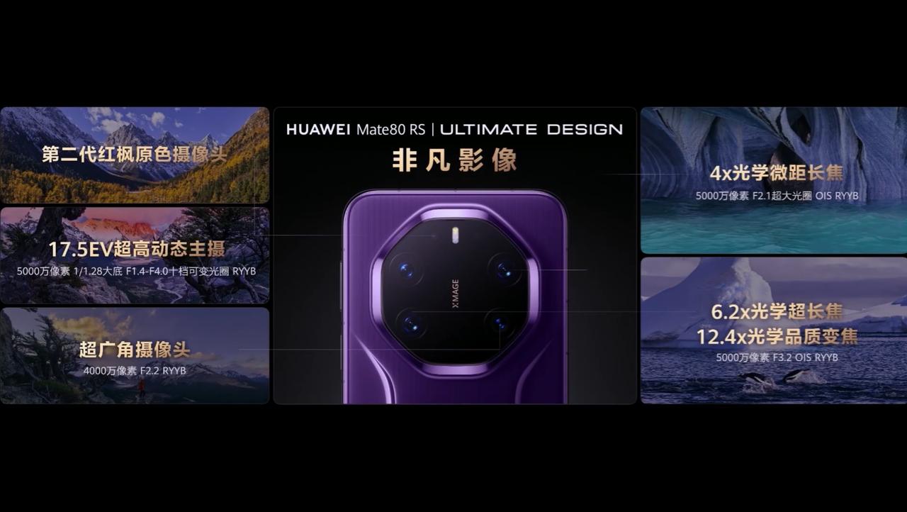 华为 Mate 80 RS 非凡大师发布,16+512GB 售价 11999 元、16GB+1TB 售价 12999 元。华为发布会华为Mate80Mate80价格 - 芯片:Mate 70 Pro + 1 代 Pro 处理器,整机性能相较上代提升 42%。方舟内存引擎,应用启动速度提升 20%,游戏启动速度提升 80%,支持硬件级光追,超冷双相变散热系统(6000+mm² VC); - 屏幕:6.9 英寸 2848×1320 OLED 2.5D 超透亮灵珑屏(双层 OLED),1% 窗口局部激发亮度 7000nits,20% 窗口局部激发亮度 4000nits,1-120Hz LTPO 自适应刷新率,1440Hz 高频 PWM 调光,300Hz 触控采样率,支持 10.7 亿色,首发全链路 BT.2020 超广色域,第三代玄武钢化昆仑玻璃盖板; - 相机:前置 13MP 超广角摄像头(F2.0 光圈)+ 3D 深感摄像头,后置 50MP 超高动态主摄(1/1.28",17.5EV,F1.4~F4.0 光圈,OIS,RYYB)+ 40MP 超广角(F2.2 光圈,RYYB)+ 50MP 微距长焦(F2.1 光圈,OIS,RYYB)+ 50MP 超长焦(F3.2 光圈,OIS,RYYB)+ 第二代红枫原色摄像头(色彩还原度提升 43%,进光量提升 96%); - 续航:6000mAh 电池,100W 快充,80W 无线快充; - 其他:重 249g,槿紫、皓白、玄黑 4 款配色,高亮钛金属中框 + 第二代昆仑玻璃后盖,支持 IP68 & IP69,蓝牙 6.0、星闪 E2.0、NFC、USB 3.1 GEN1,高低频双振膜立体声单元(低音性能提升 60%),3D 人脸 + 侧边指纹识别,支持双向北斗卫星消息、天通卫星通讯,2.4GHz 畅连无网通信,700MHz 无网应急通信,支持防漏音通话 3.0,预装 HarmonyOS 6.0 系统,首发户外探索模式。