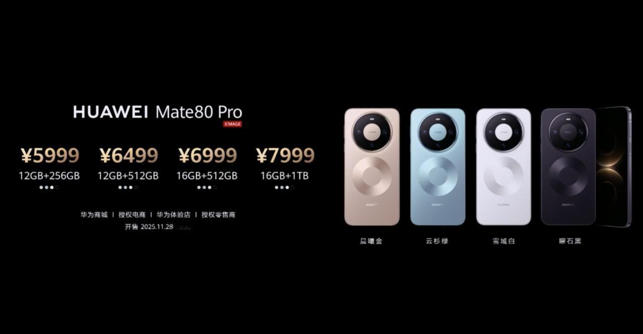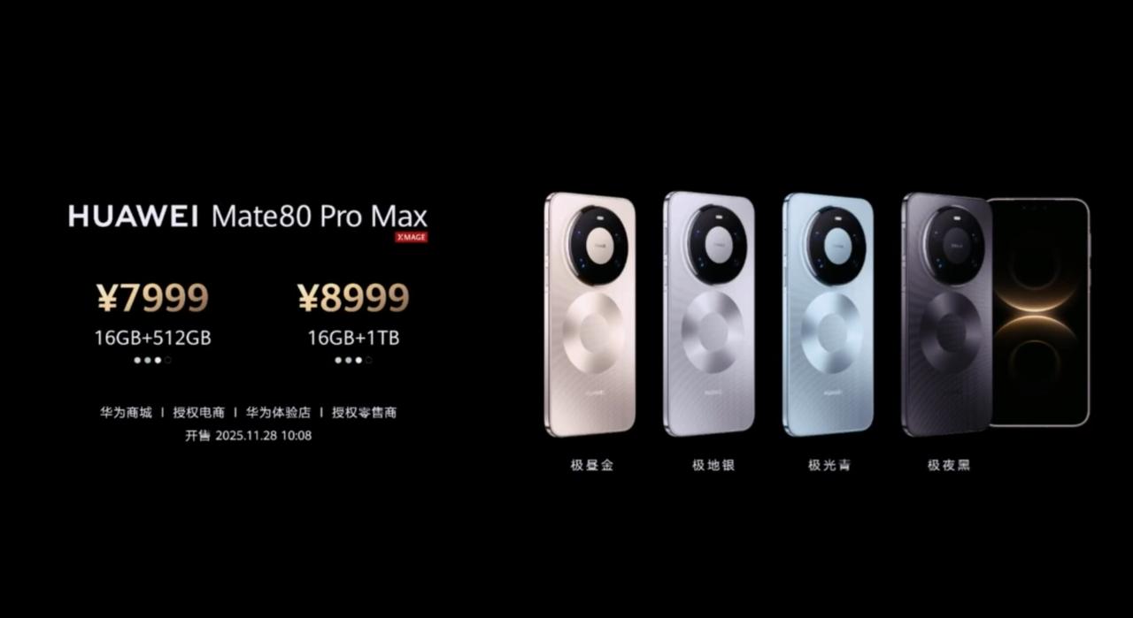 价格这么爆?华为Mate80标准版4699;Pro版5999元起。 华为Mate80 Pro Max起步就是16+512,7999元起。 华为Mate80 RS非凡大师起步就是20+512GB,11999元起。 感觉比上一代普遍降价500到1000吧,很好冲量。